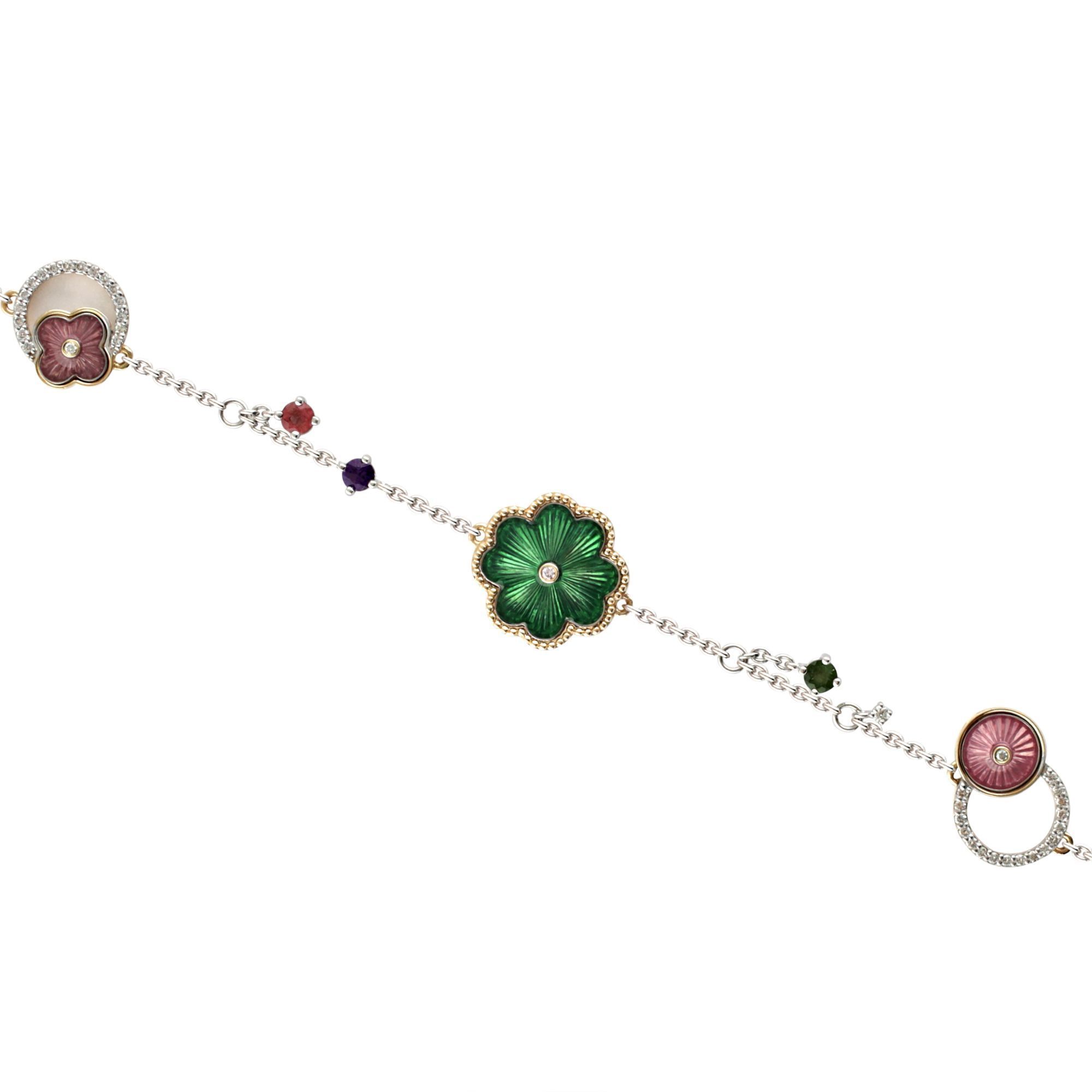 Современные версии повторяют мотивы прошлого, предлагая новые интерпретации старых форм. Особенно интересны дизайнерские решения, где украшение инкрустировано камнем и символизирует удачу или любовь. Например, женский золотой браслет с бриллиантами из коллекции Clover от ЮД "Русские Самоцветы" изображением четырехлистного клевера символизирует счастье, а анклет с фианитами добавляет искру изыска и блеска.