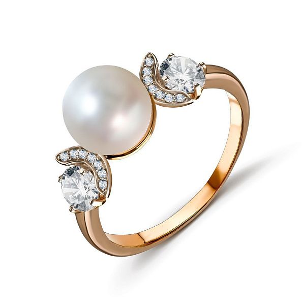 Кольцо из красного золота с жемчугом (арт. 12521) – металл придает нежный оттенок, гармонируя с перламутровым блеском жемчуга, подчеркивая романтичный образ.