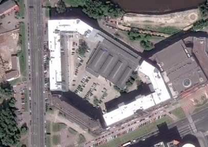 По форме такого же стилизованного бриллианта были выстроены здания завода и корпусов.