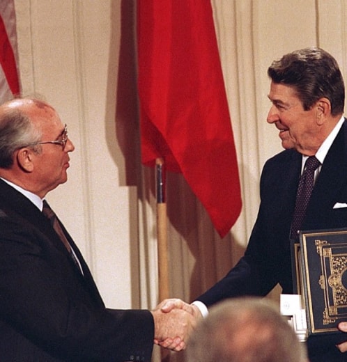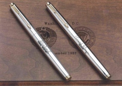 В знак великого события, подписания Михаилом Горбачевым и Рональдом Рейганом Договора о ликвидации ракет средней и меньшей дальности, «Русские самоцветы» изготовили подарок американскому президенту — драгоценную камею.