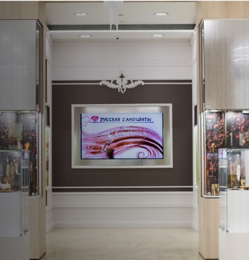 Бутик располагается на втором этаже крупнейшего в Санкт-Петербурге Ювелирного центра «ФАБЕРЖЕ 8» – флагманского салона Императорского ювелирного дома «Русские самоцветы».