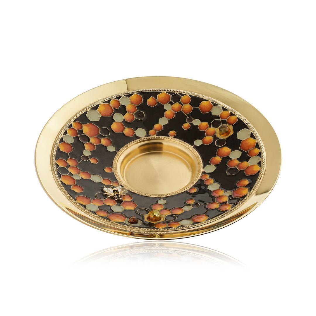 Блюдце из набора «Медовый» из серебра с янтарем