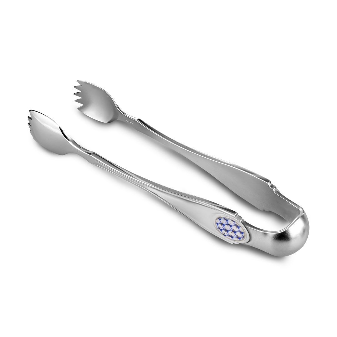Узоры предметов сервировки стола выполнены по мотивам декора «Собственного сервиза императрицы Елизаветы Петровны». Изделия объединяет решетчатый орнамент, популярный в эпоху стиля рококо. Каждый предмет создан из серебра 925 пробы и вручную расписан эмалью.