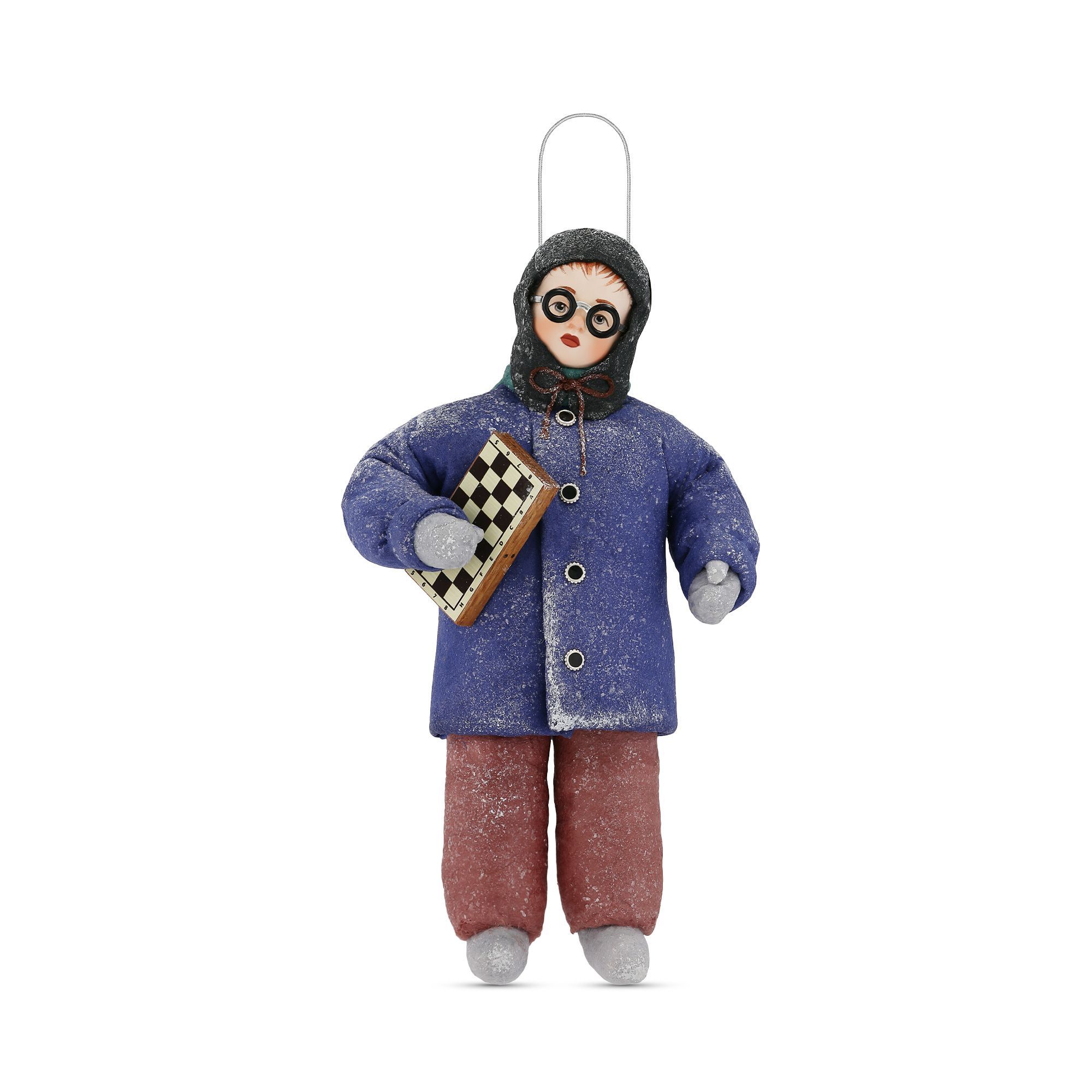 Игрушка создана по восстановленным технологиям, полностью ручной работы, выполнена из ваты и крахмального клея, с изысканными элементами из серебра 925 пробы и эмалевыми вставками. Личико игрушки повторяет облик антикварной куклы конца XIX века. Расписана акриловыми красками и покрыта слюдой.