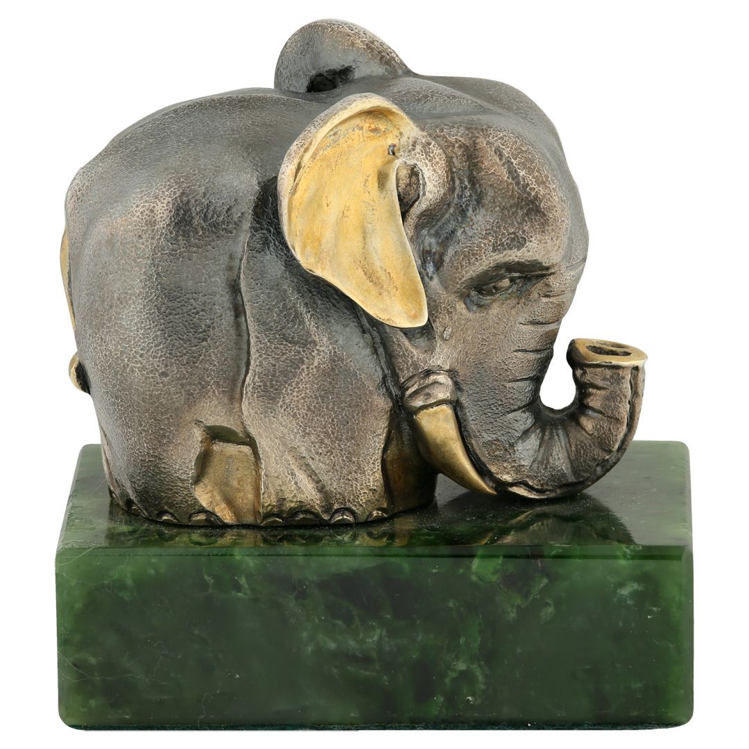 Украшение интерьера «Слоник» из серебра с нефритом