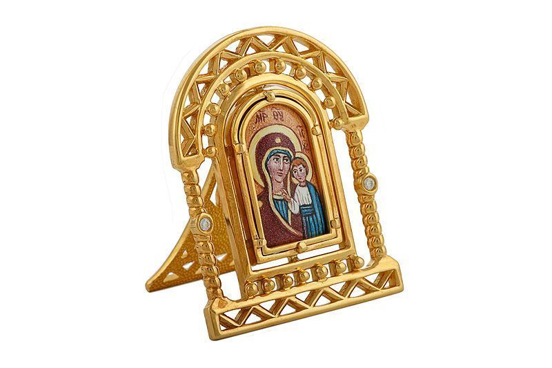 Икона «Казанская Богоматерь» из серебра с фианитами