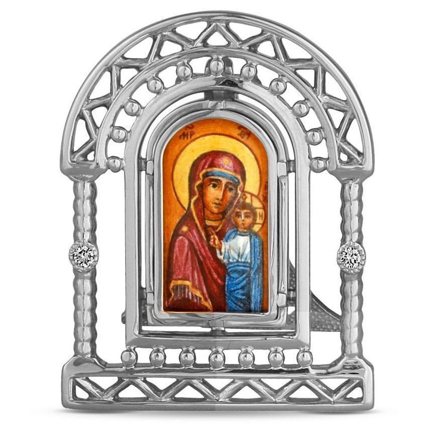 Икона «Казанская Богоматерь» из серебра с фианитами