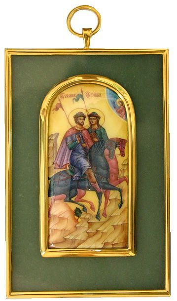 Икона «Борис и Глеб» из серебра с нефритом