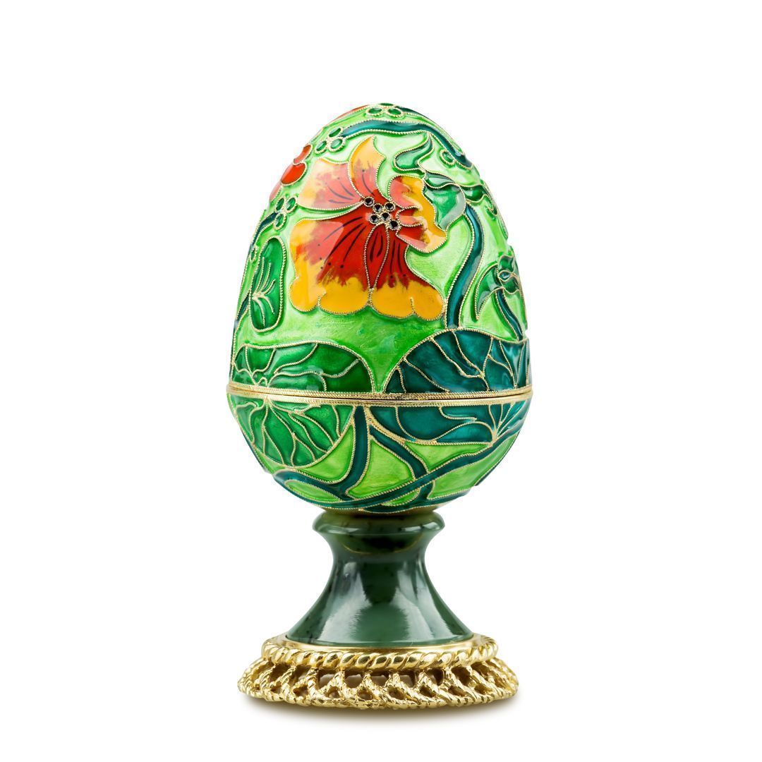 Яйцо-шкатулка «Настурция» из серебра с нефритами