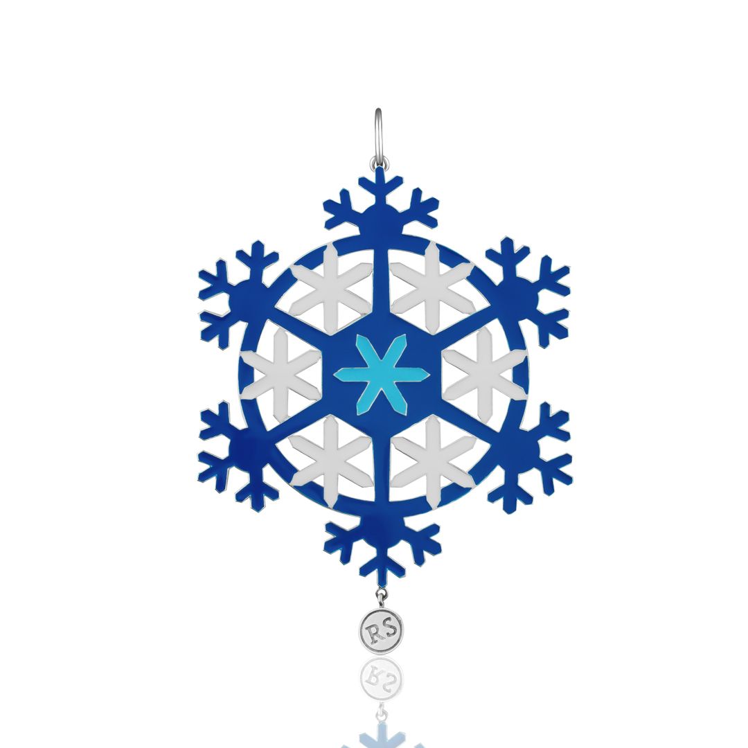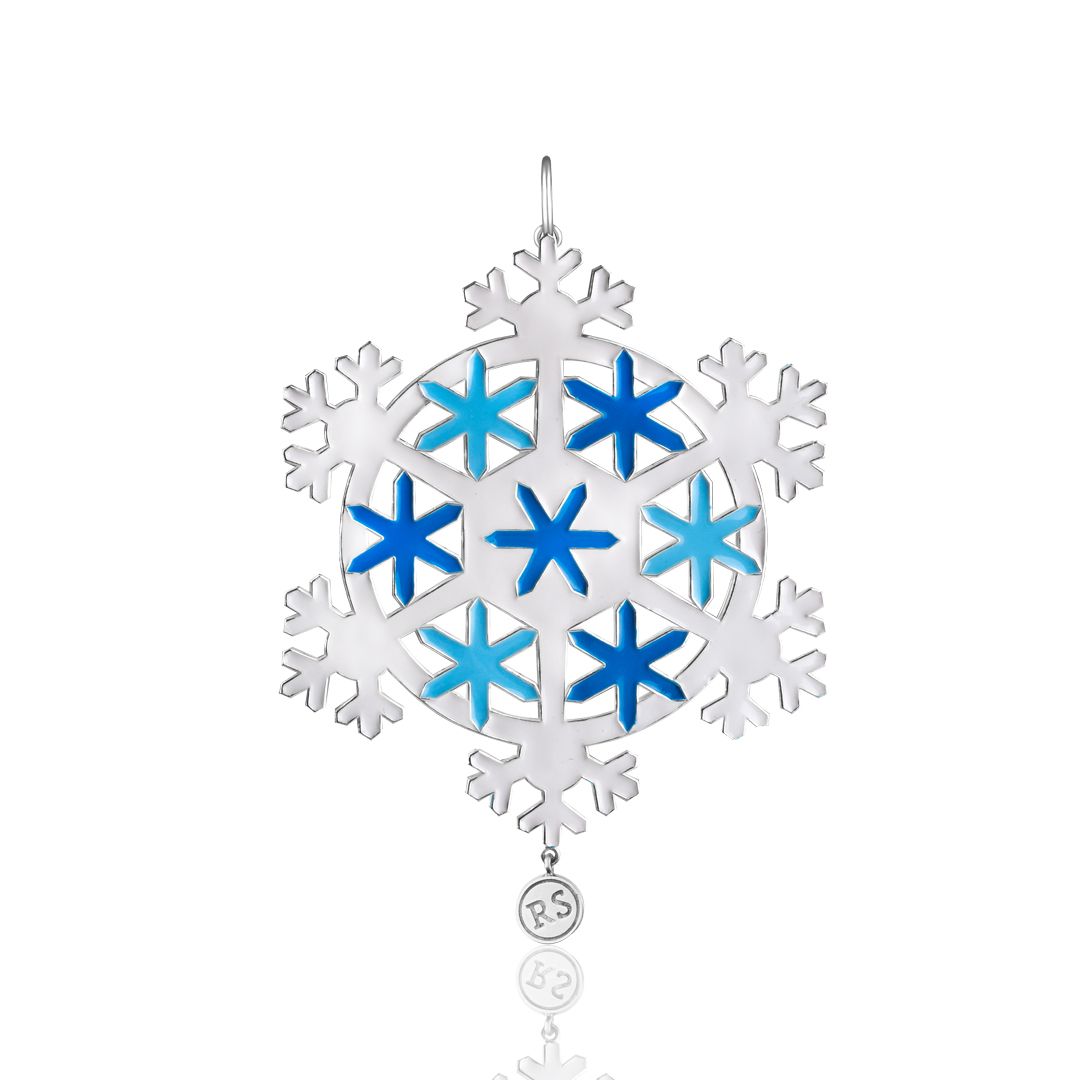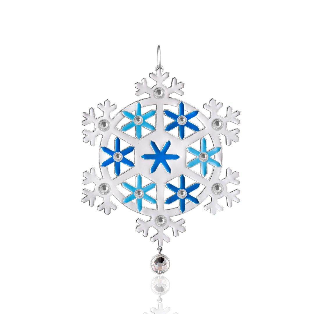 Ёлочная игрушка «Снежинка» из серебра с ювелирным стеклом