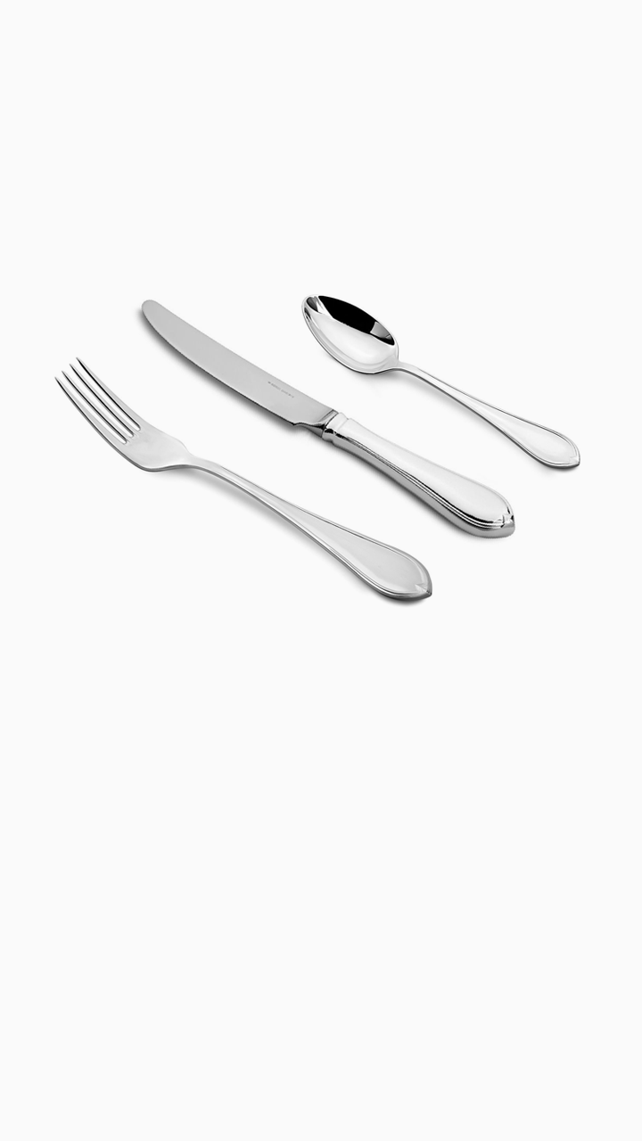 Коллекция столового серебра «Элегант» – лаконичное воплощение классики. Изделия выполнены из серебра 925 пробы, что подчеркивает естественную красоту металла и высокое качество технологий. Каждый предмет коллекции создан с акцентом на чистые линии и элегантность форм, что делает их универсальными как для повседневного использования, так и для торжественных случаев.