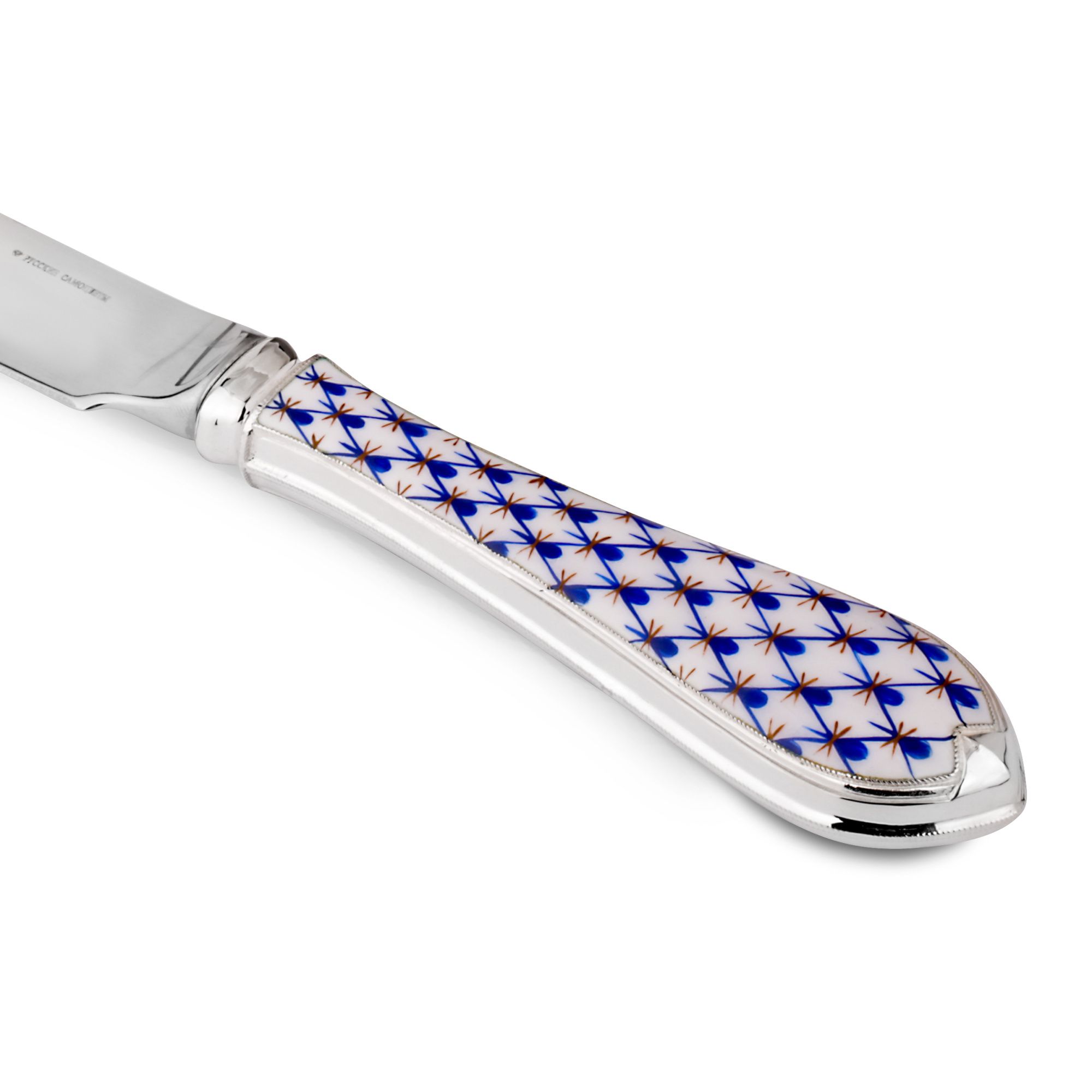 Узоры предметов сервировки стола выполнены по мотивам декора «Собственного сервиза императрицы Елизаветы Петровны». Изделия объединяет решетчатый орнамент, популярный в эпоху стиля рококо. Каждый предмет создан из серебра 925 пробы и вручную расписан эмалью.