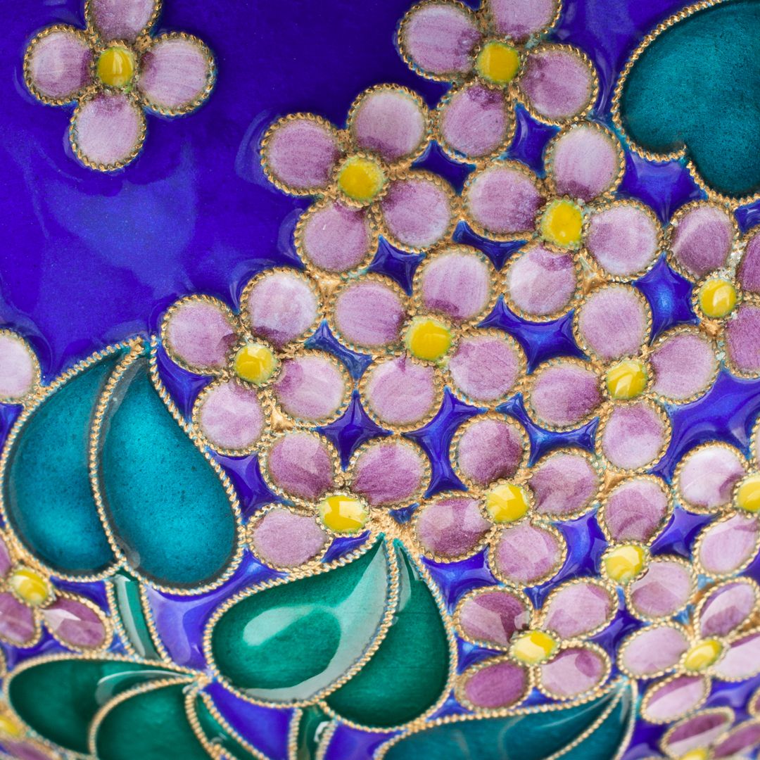 Перегородчатая эмаль - древний искусный метод декорирования металлических поверхностей, который придает предметам неповторимый шарм. Сияющие столовые приборы, изысканная посуда и элегантные украшения, выполненные уникальным способом, и в наше время стали неотъемлемой частью интерьера и стиля.