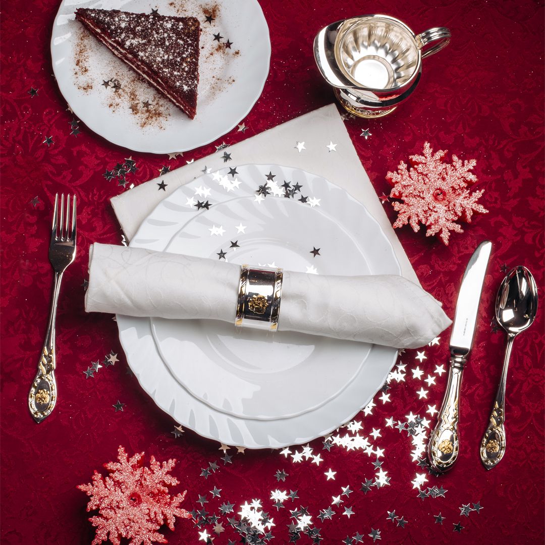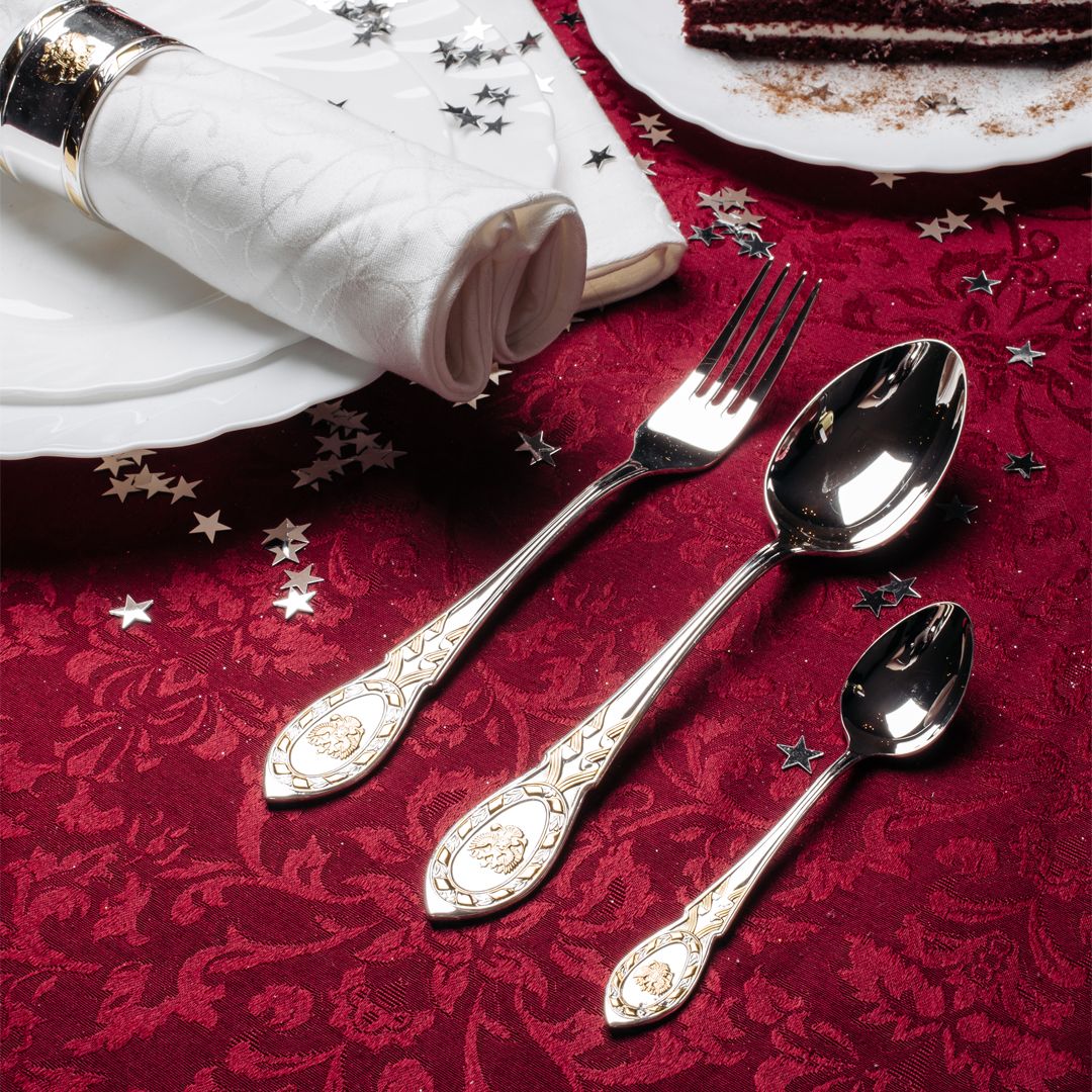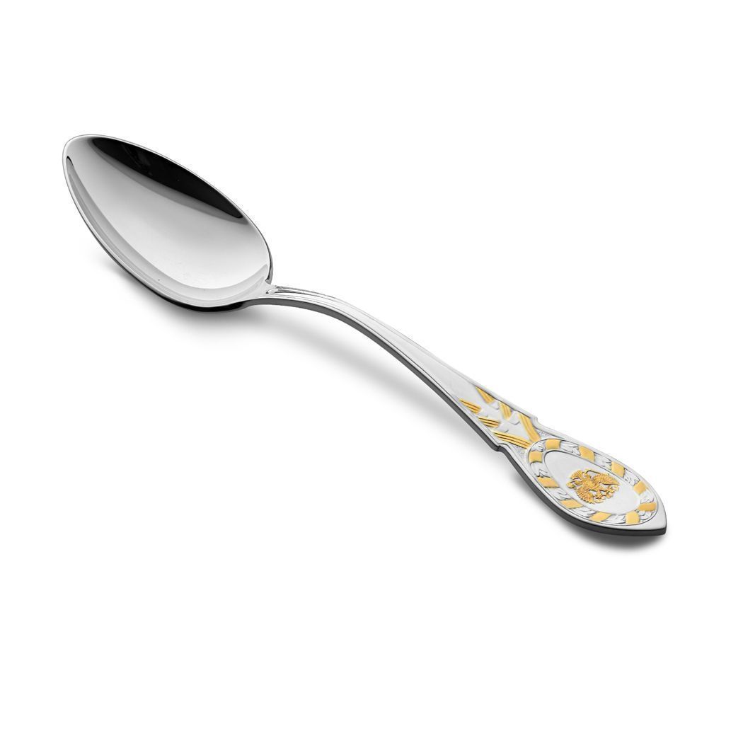 В основу дизайна столового серебра из набора «Государственный» легли изделия поставщика Двора Его Императорского Величества купца 3-й гильдии Павла Сазикова. Предметы сервировки стола, декорированные гербом России, подаются на приемах Московского Кремля и Константиновского дворца в Стрельне.
