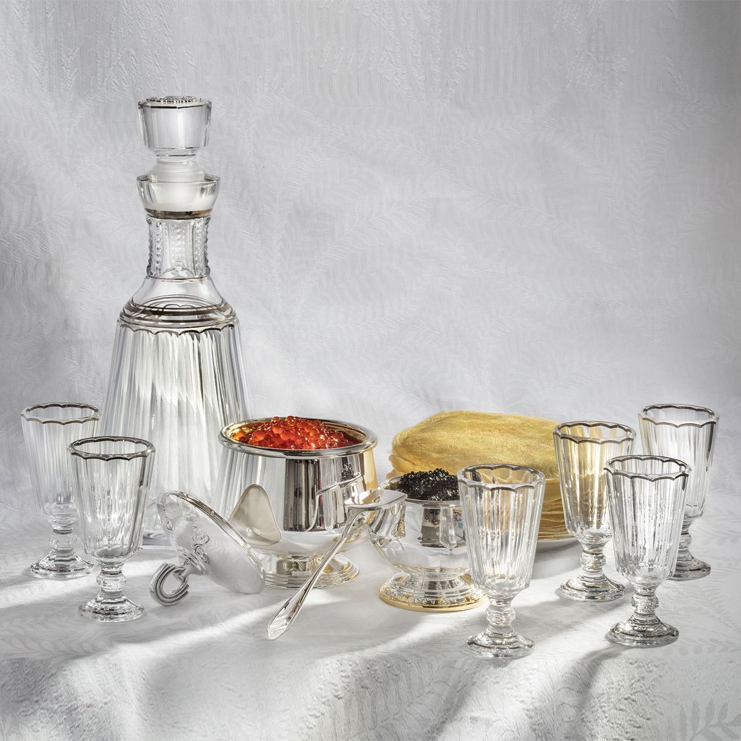 В основу дизайна столового серебра из набора «Государственный» легли изделия поставщика Двора Его Императорского Величества купца 3-й гильдии Павла Сазикова. Предметы сервировки стола, декорированные гербом России, подаются на приемах Московского Кремля и Константиновского дворца в Стрельне.