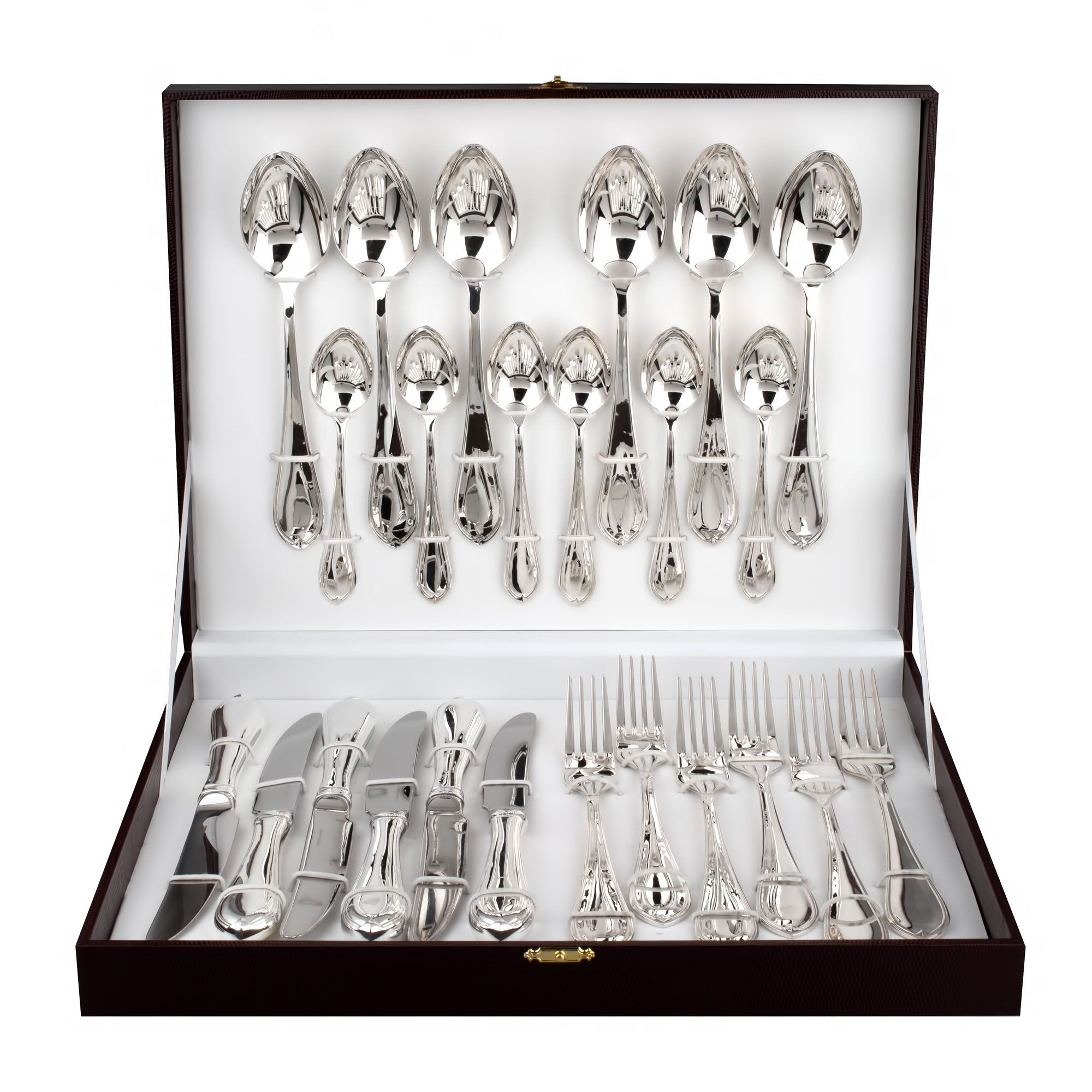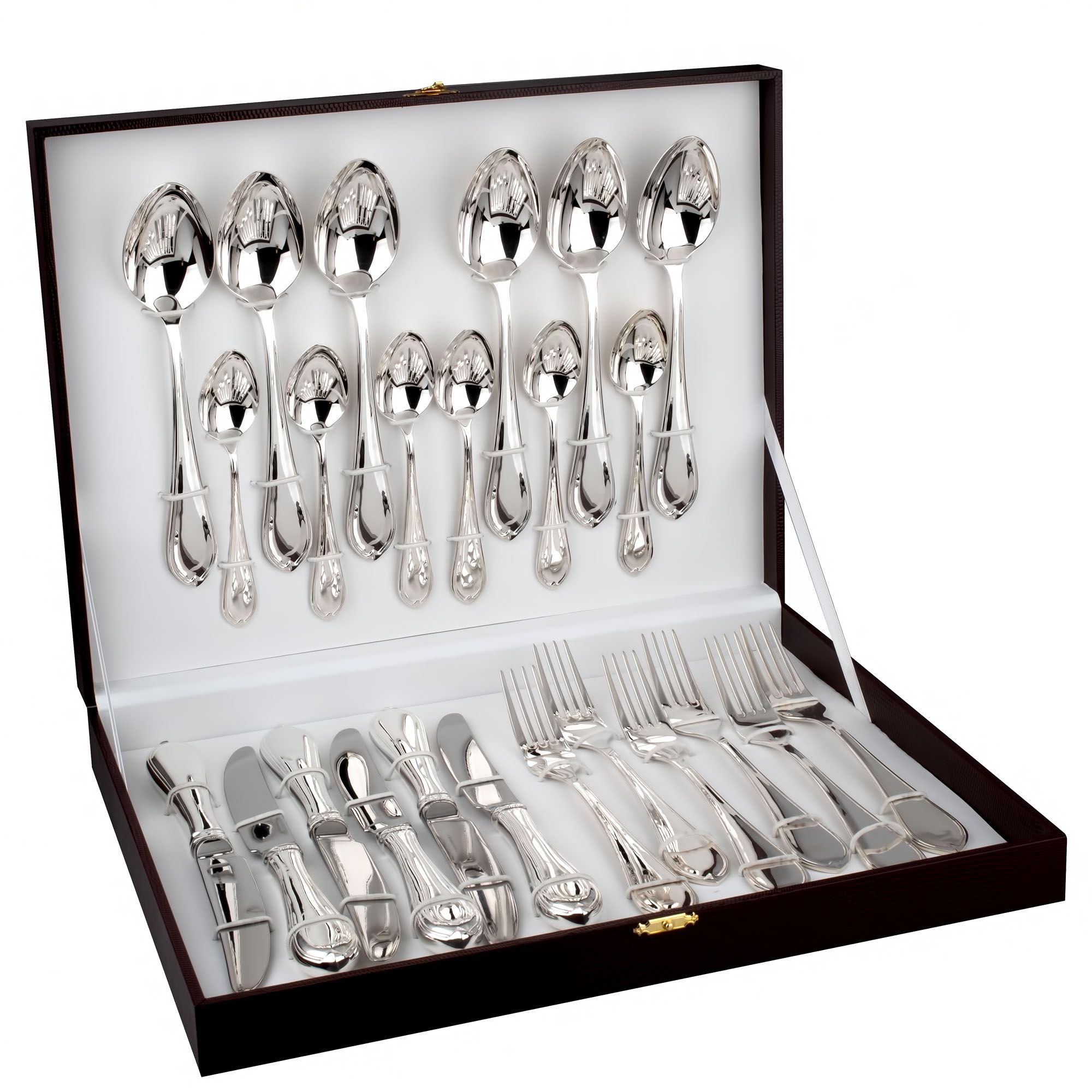 Коллекция столового серебра «Элегант» – лаконичное воплощение классики. Изделия выполнены из серебра 925 пробы, что подчеркивает естественную красоту металла и высокое качество технологий. Каждый предмет коллекции создан с акцентом на чистые линии и элегантность форм, что делает их универсальными как для повседневного использования, так и для торжественных случаев.