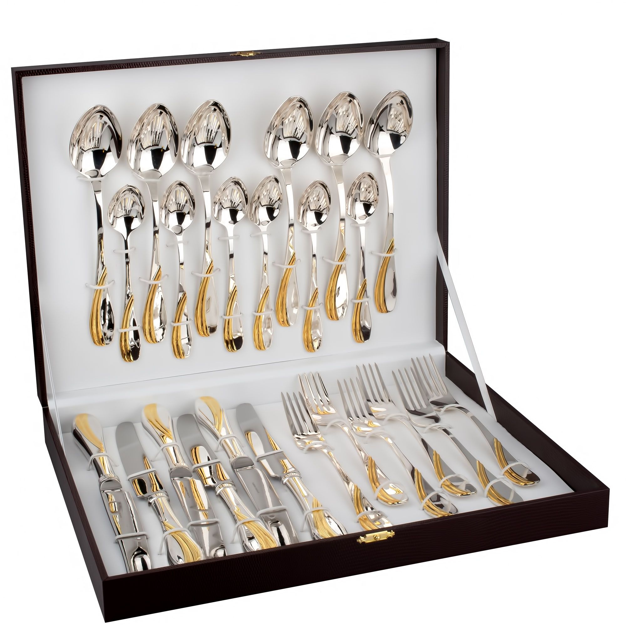Предметы сервировки стола из набора «Изящный» отличает утонченный дизайн: на благородном серебре сияет декор, покрытый золочением 999 пробы. Такие приборы будут храниться веками и станут настоящей фамильной ценностью.