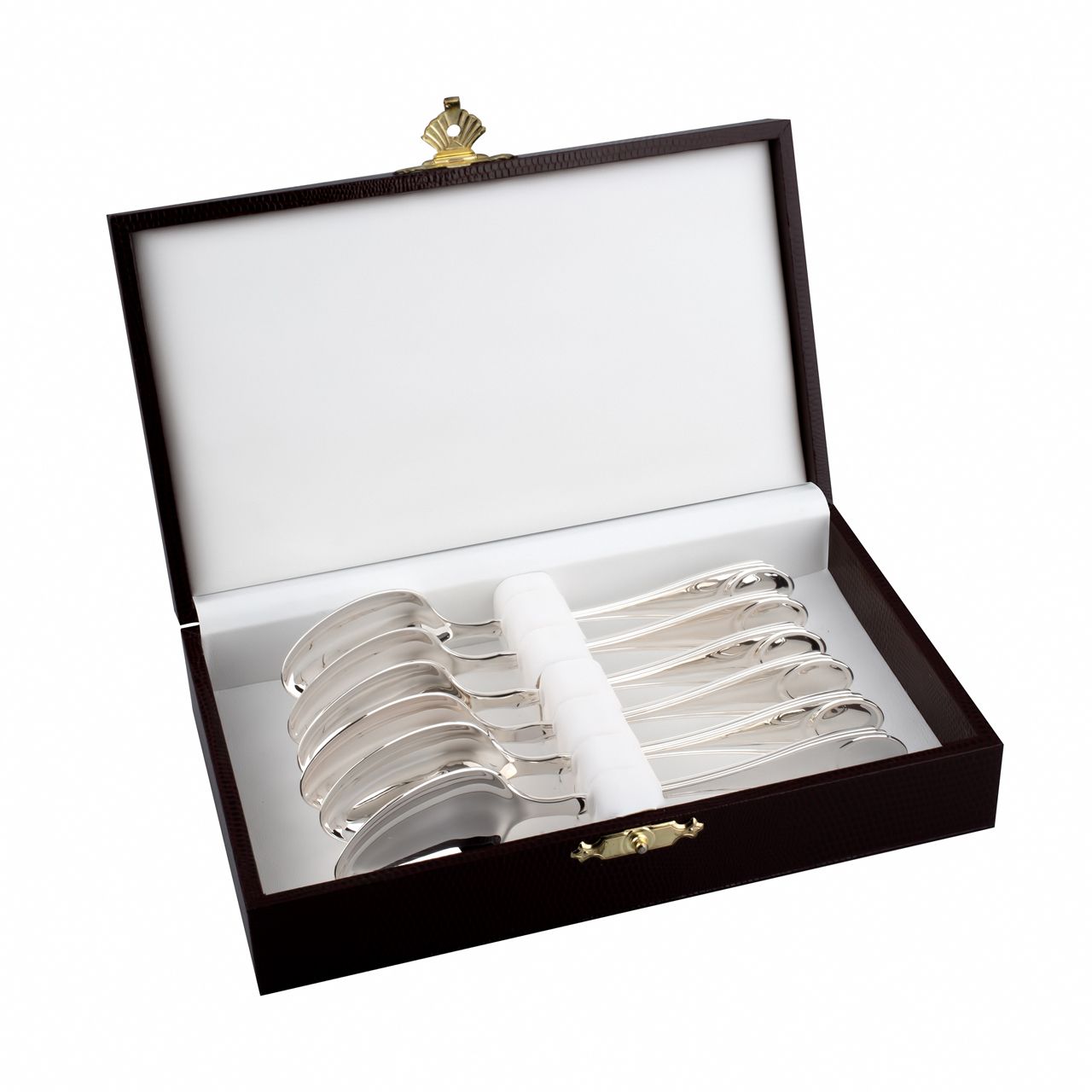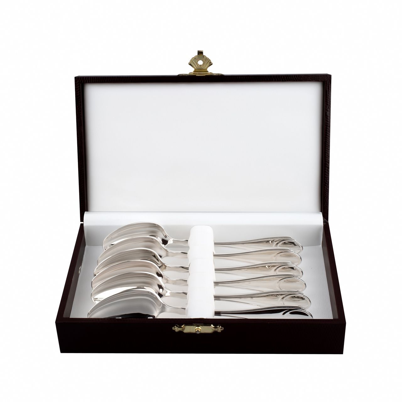В набор входит 40 предметов сервировки стола, каждый из которых отличается утонченным великолепием. Все изделия имеют свободное овальное окошко, на которое наносится герб или монограмма персоны. Такие наборы столового серебра – настоящая семейная реликвия, которая переходит из поколения в поколение.