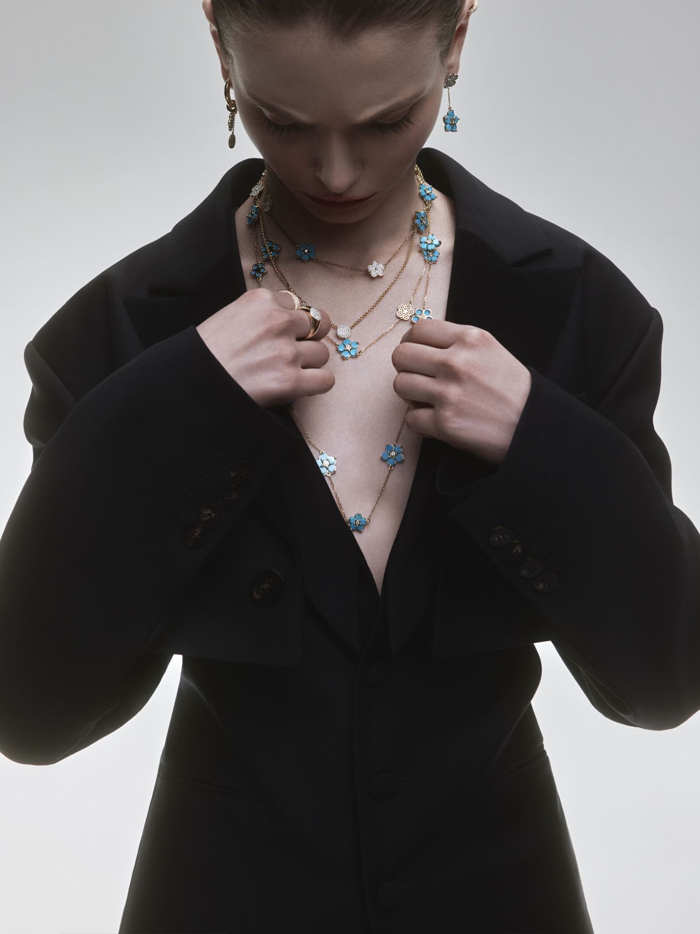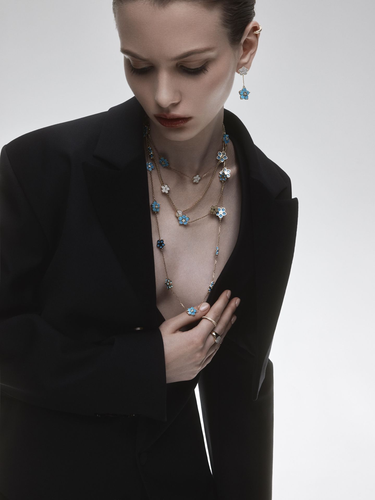 Украшения о незабываемых моментах, чувствах и дорогих сердцу людях. Хрупкие цветы с бриллиантами-сердцевинами в золотой оправе, нежно обнимающей лепестки из оникса и бирюзы глубоких оттенков. Украшения, наполненные сакральным смыслом, силой любви и верности. Русские народные мотивы, вечные темы и современное ювелирное искусство — это все о коллекции FORGET ME NOT. Дизайнеры облачили фразу «Не забывай меня» в образ, чтобы каждый мог без слов сообщить о своей преданности. Незабудки — неувядающие цветы, хранящие счастье двух сердец. Украшения станут символами ваших отношений и фамильными ценностями семьи.