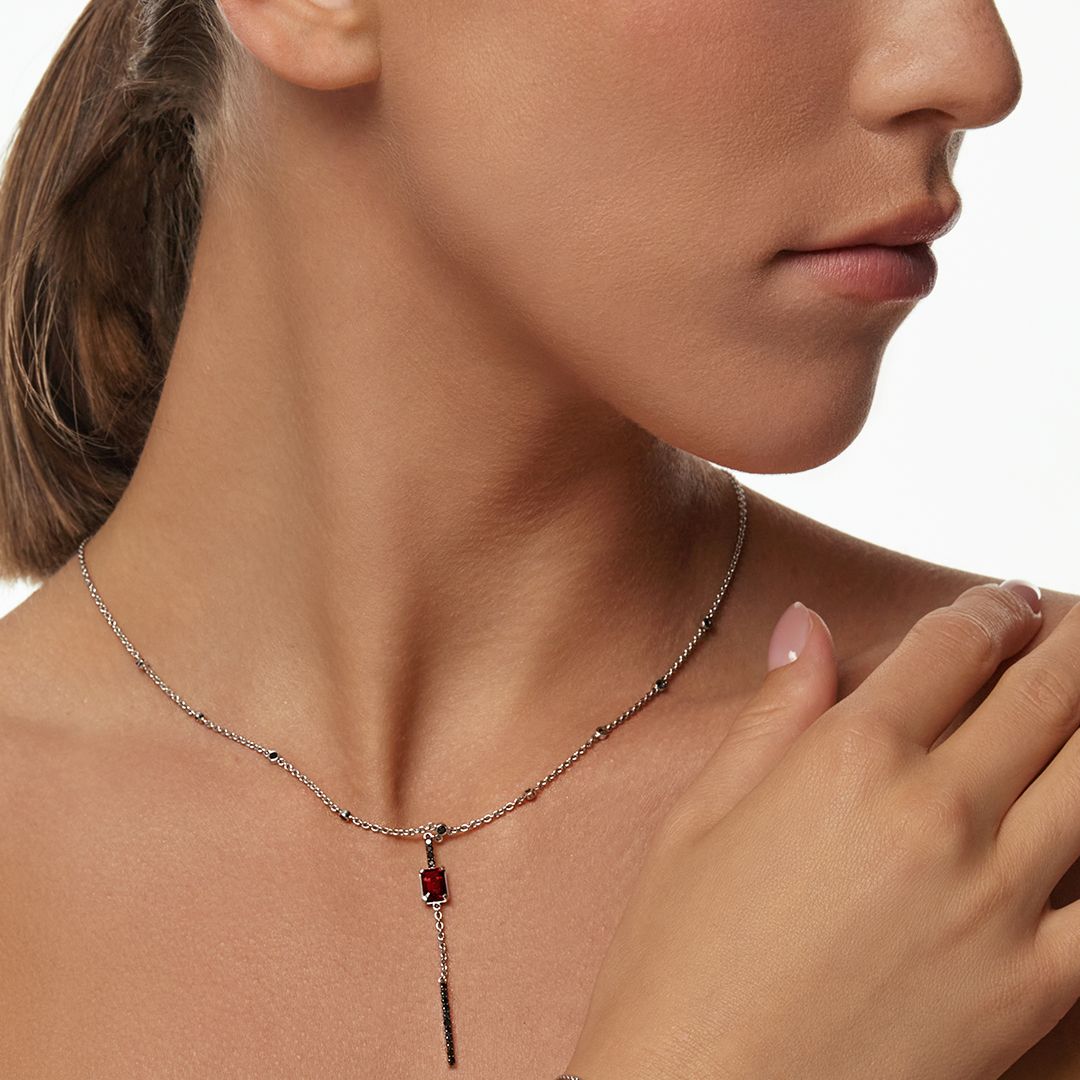 Колье из белого золота с гранатом и бриллиантами