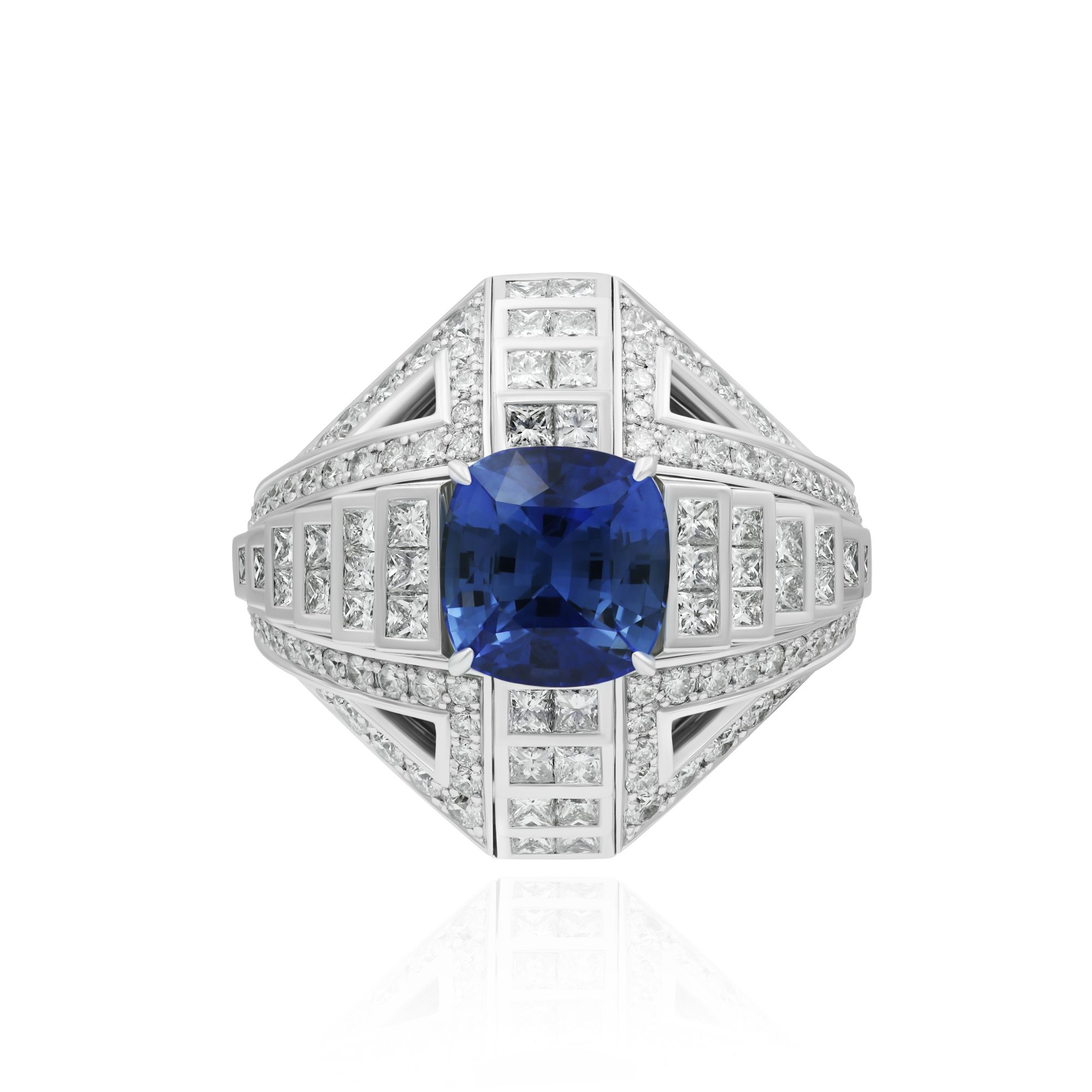Кольцо из белого золота с сапфиром 4.75 ct и бриллиантами