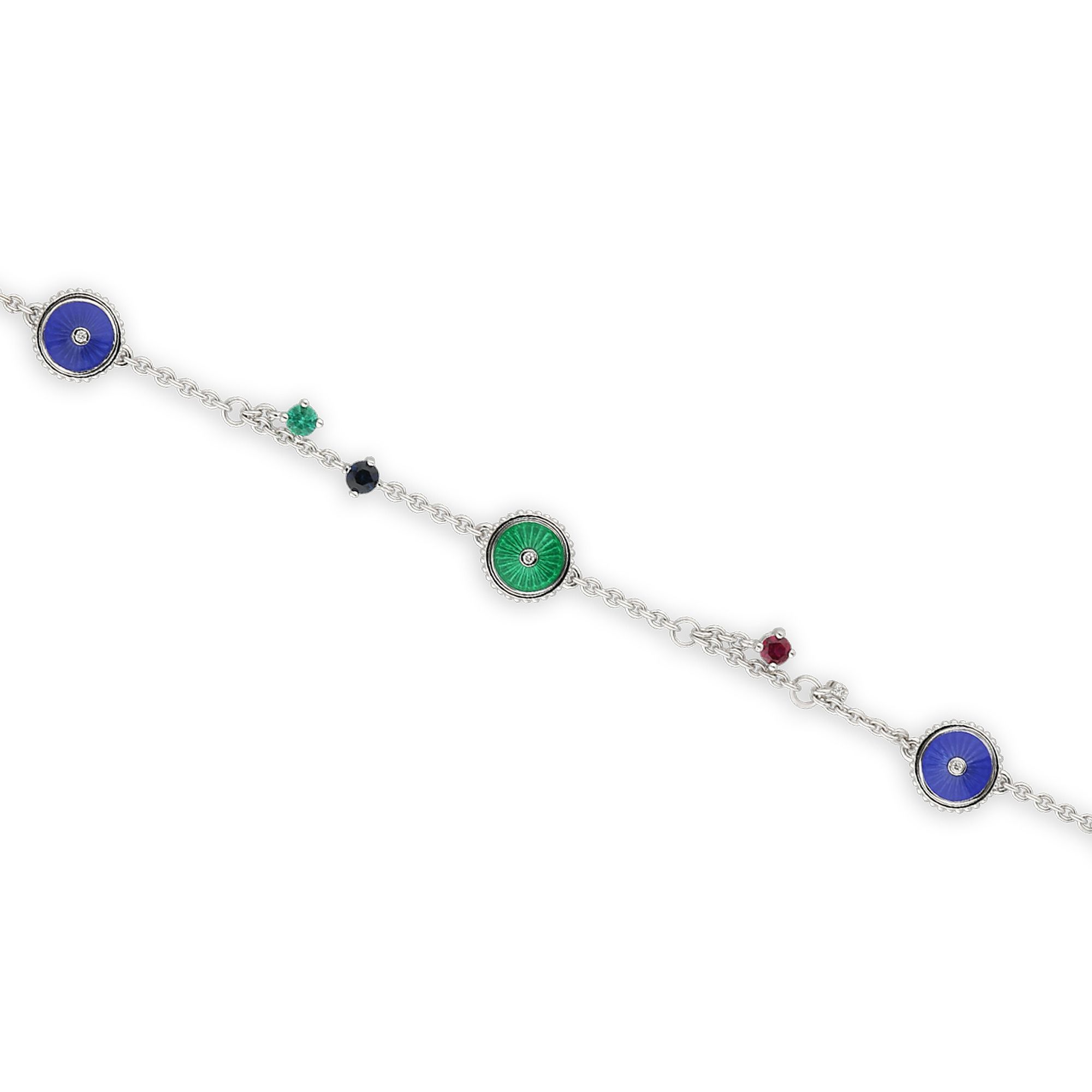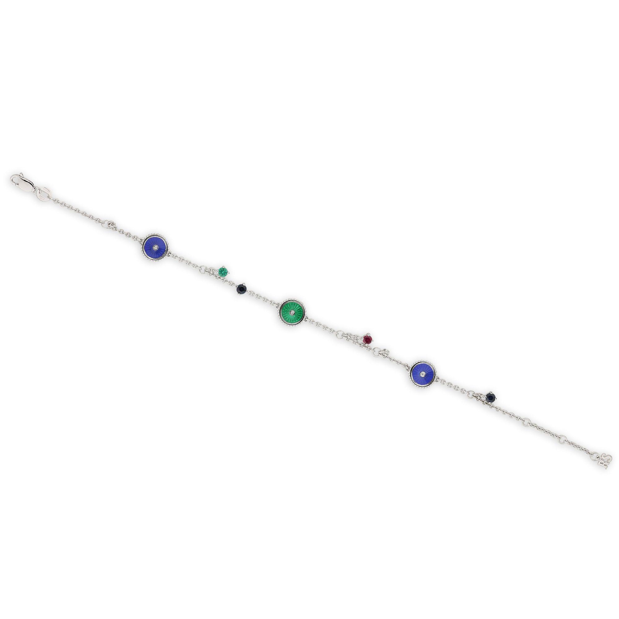 Браслет из белого золота с рубином, изумрудом, бриллиантами и сапфиром