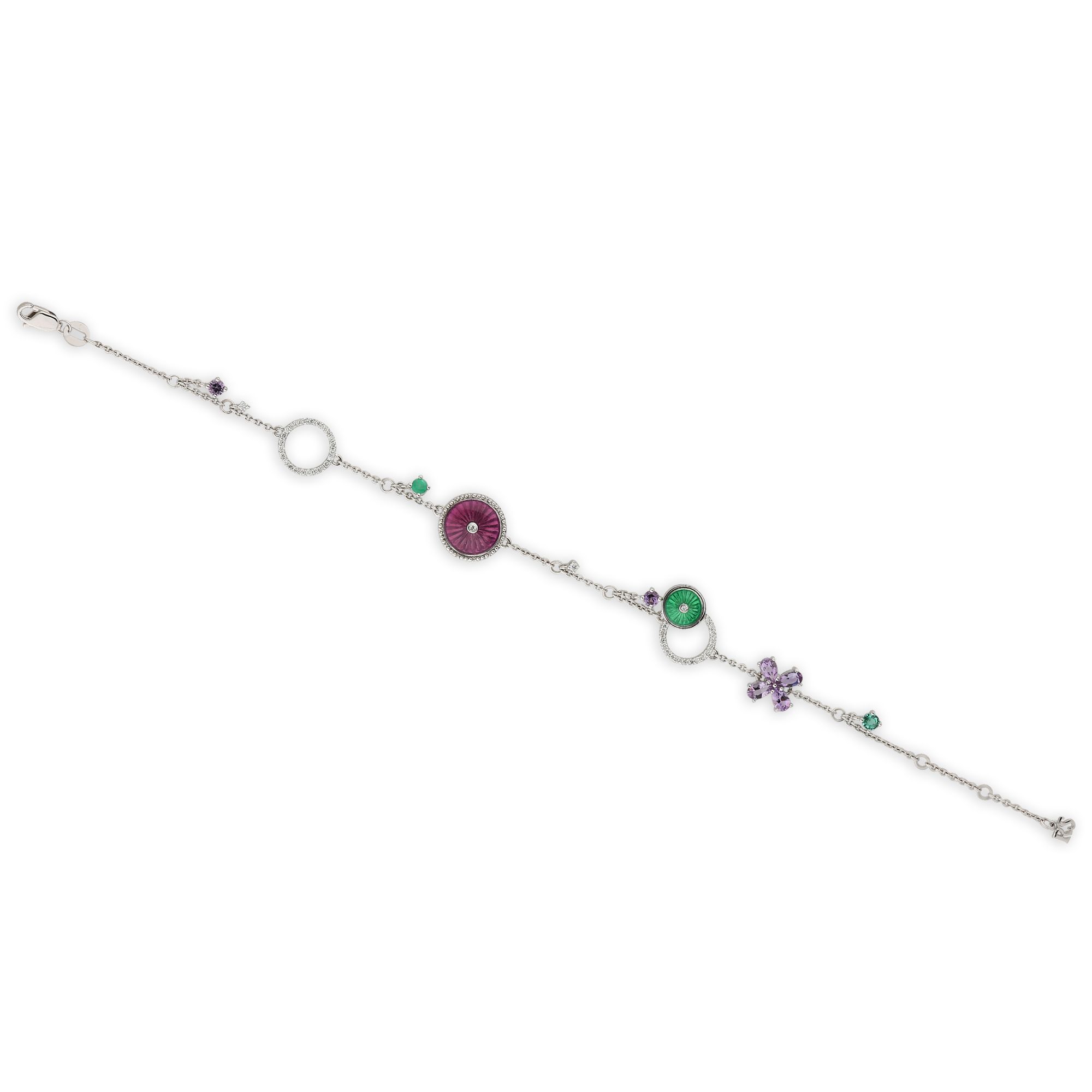 Браслет из белого золота с аметистами, изумрудами и бриллиантами