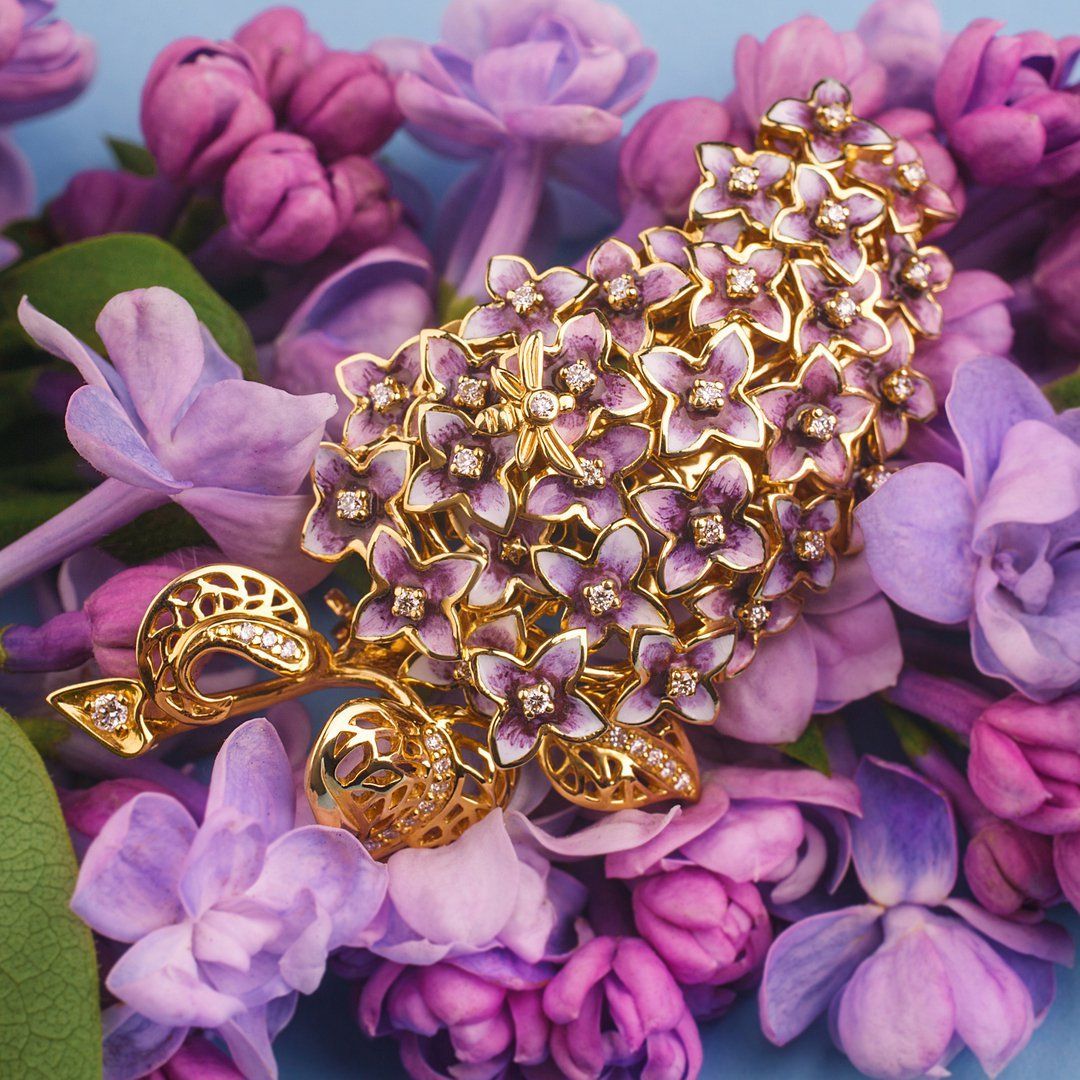 Брошь из желтого золота с бриллиантами