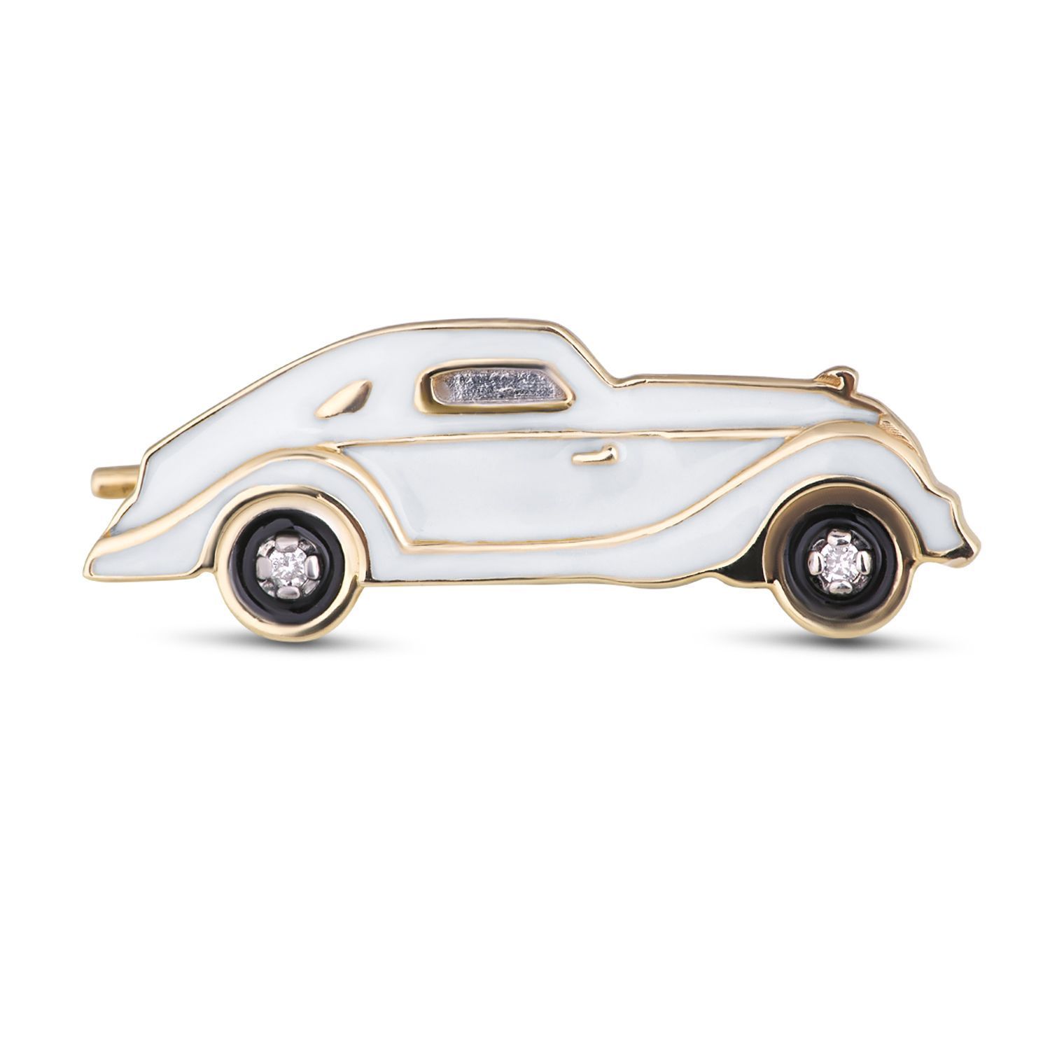 Императорский ювелирный дом «Русские самоцветы» создал коллекцию значков «Машинки». Изделия изготовлены из золота 585 пробы в виде ретро-автомобилей – «корпус», «колеса», «стекла» вручную покрыты яркой эмалью. «Фары» и другие детали машин декорированы бриллиантами круглой огранки. Украшения выполнены столь искусно, что выглядят как настоящие.