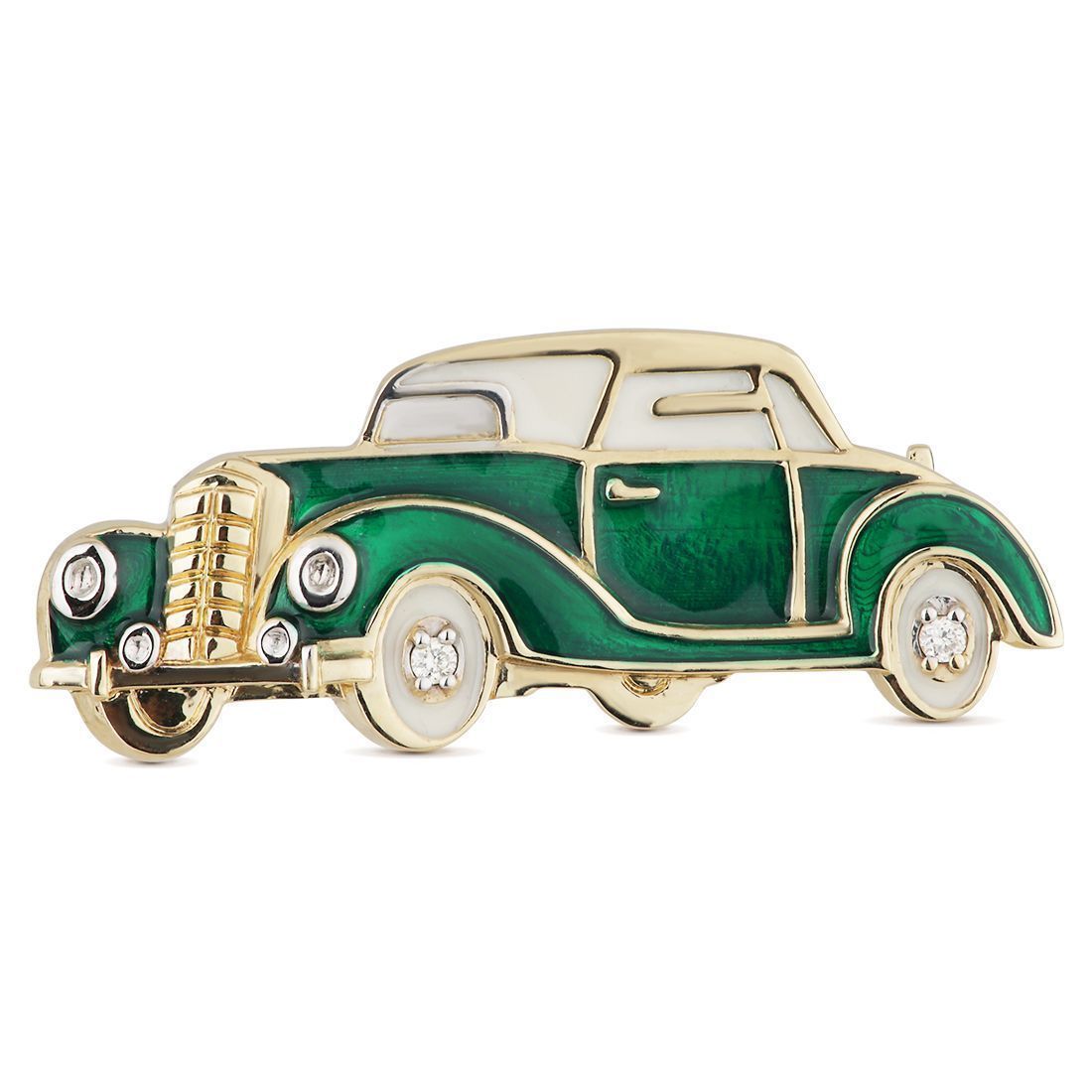 Императорский ювелирный дом «Русские самоцветы» создал коллекцию значков «Машинки». Изделия изготовлены из золота 585 пробы в виде ретро-автомобилей – «корпус», «колеса», «стекла» вручную покрыты яркой эмалью. «Фары» и другие детали машин декорированы бриллиантами круглой огранки. Украшения выполнены столь искусно, что выглядят как настоящие.