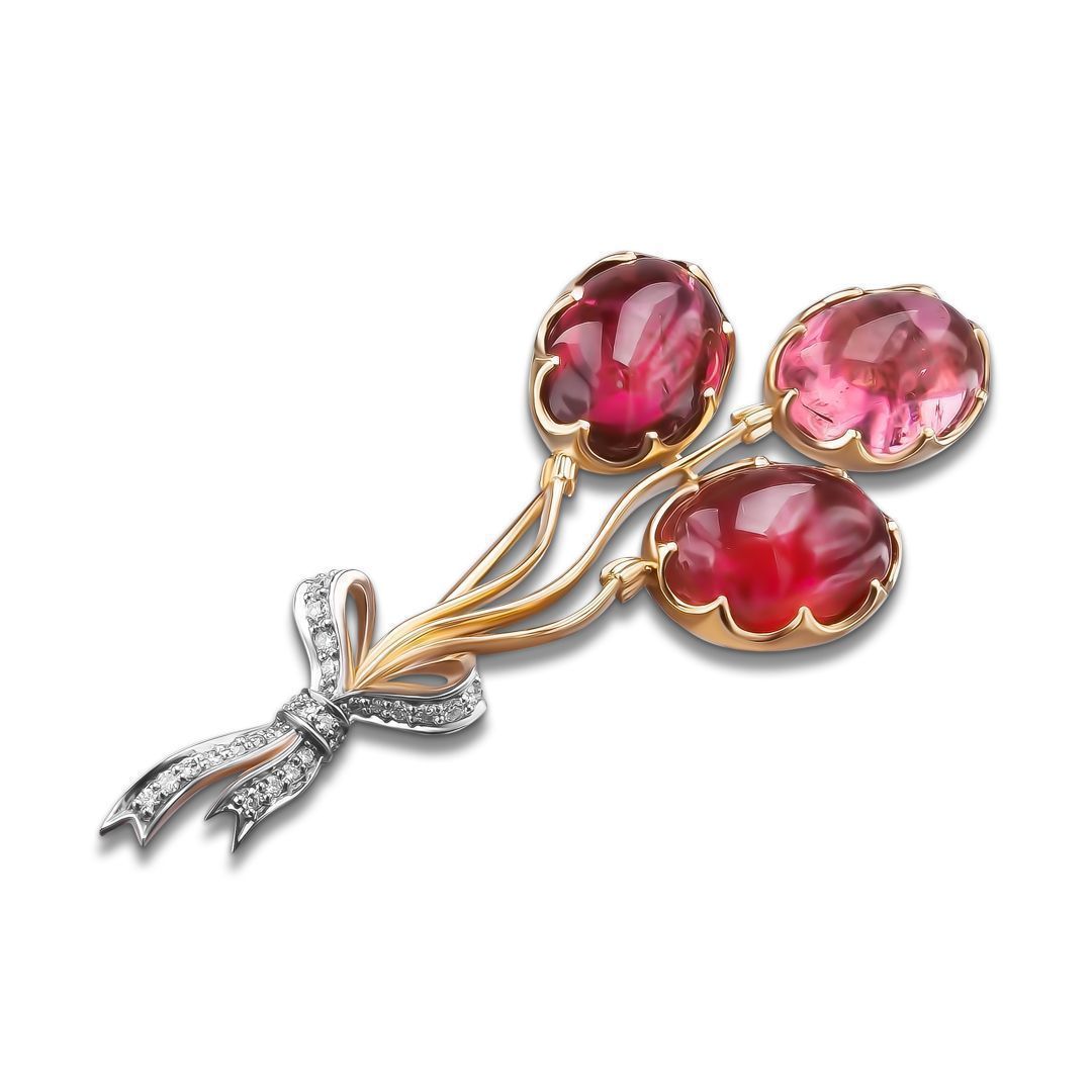 Брошь из желтого золота с турмалинами и бриллиантами