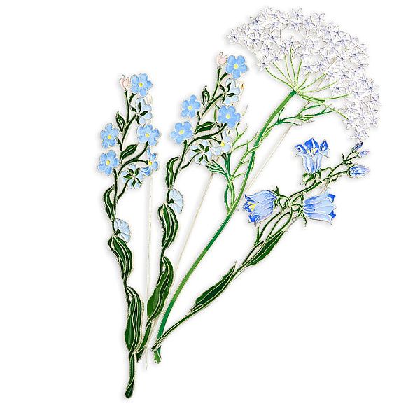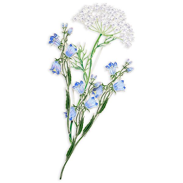 Нежный оттенок так искренне и нежно расписанных эмалью цветов – один из моих любимых в коллекции. Именно простому колокольчику достается большее количество комплиментов. Он гордо украшает мой букет из брошей».