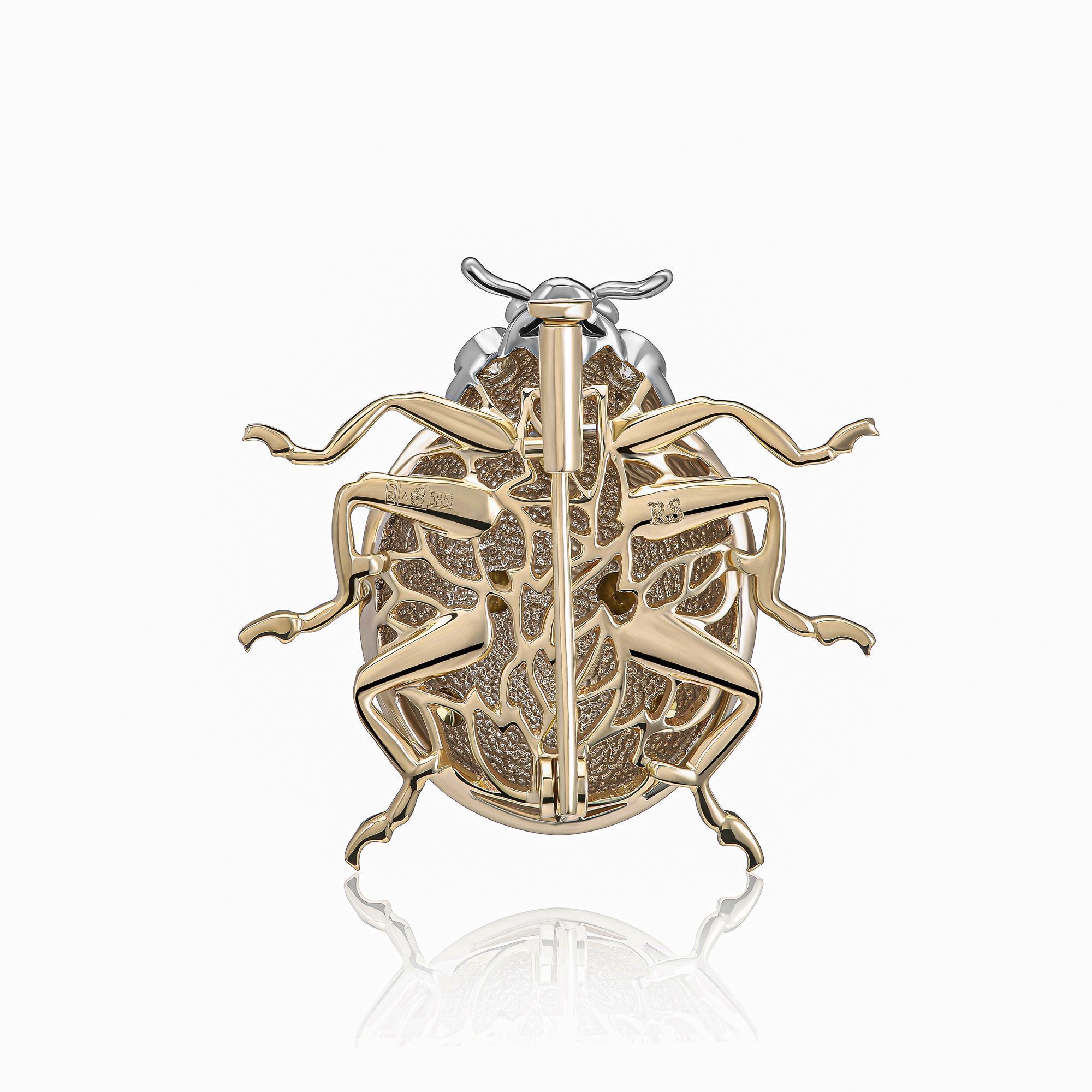 Брошь из желтого золота с бриллиантами и сапфирами