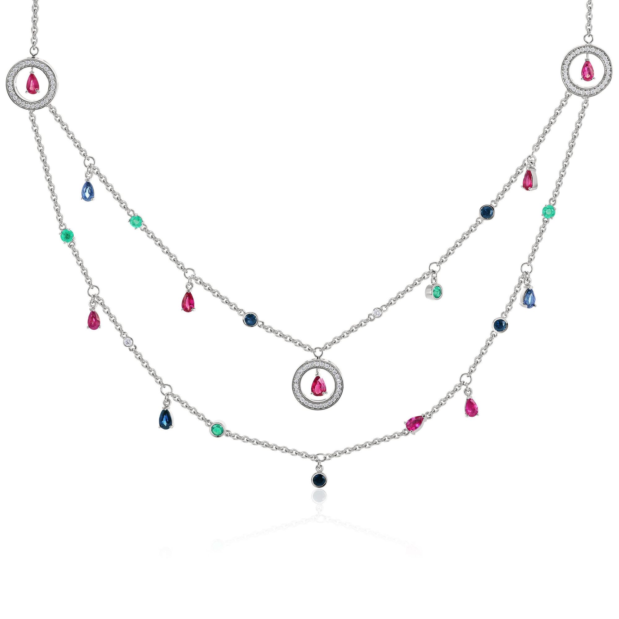 Колье из белого золота с рубинами, изумрудами, бриллиантами и сапфирами