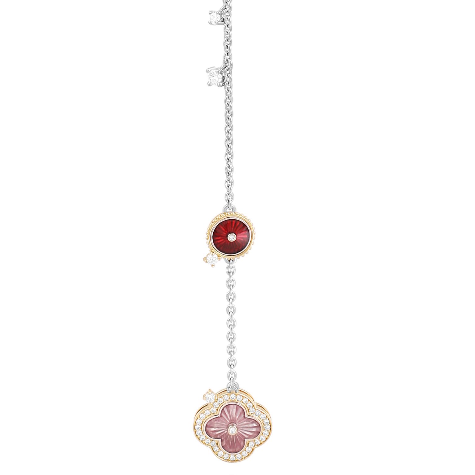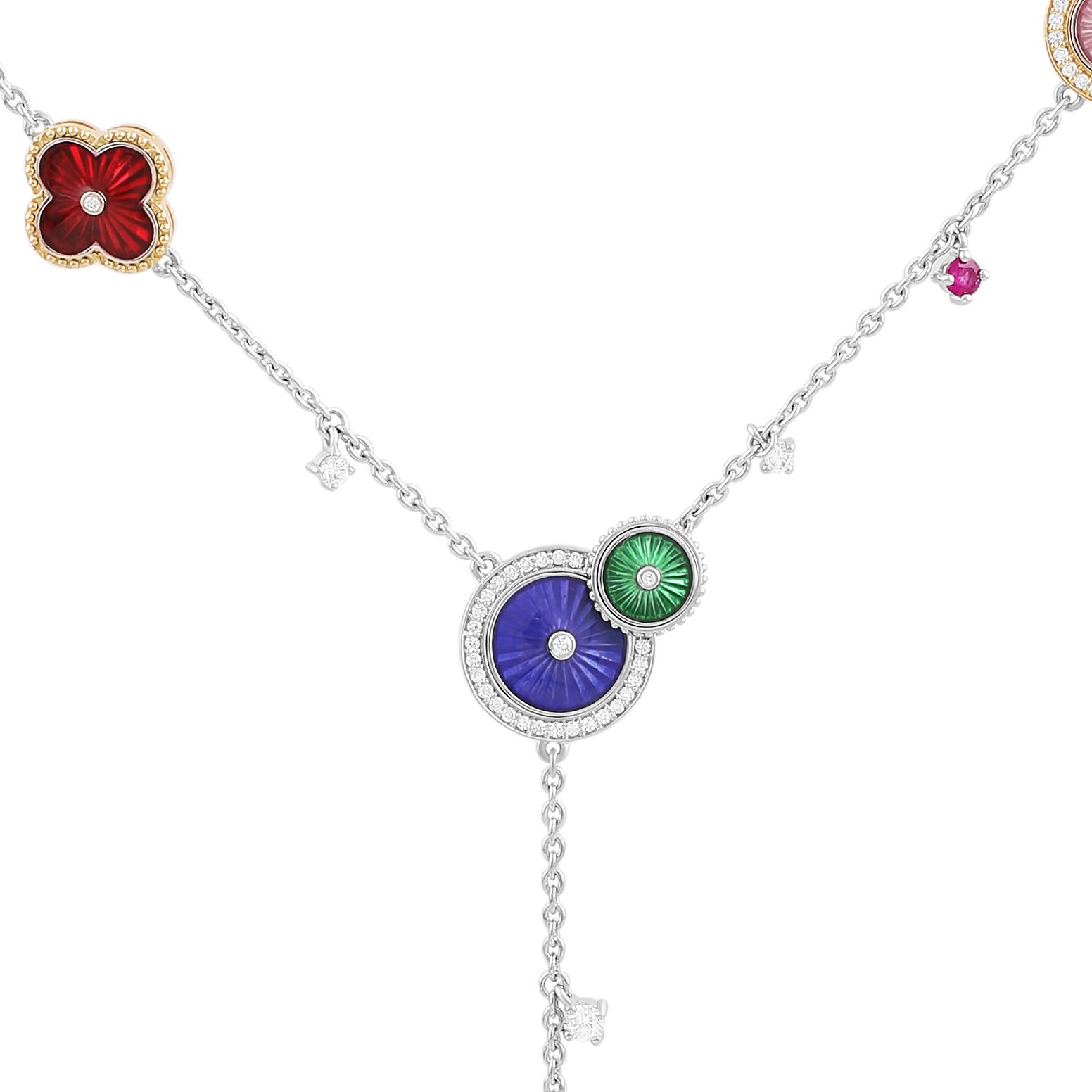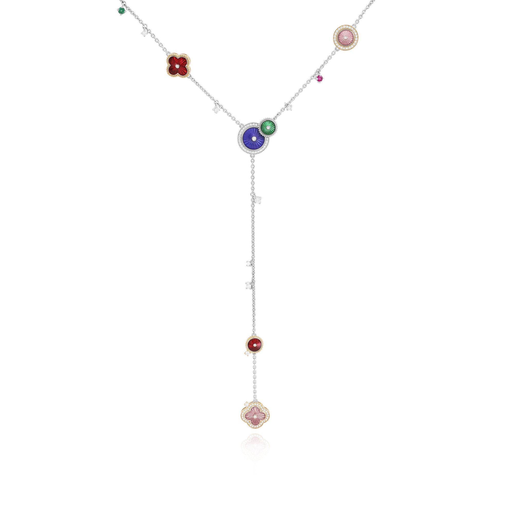 Колье из белого золота с рубином, бриллиантами и изумрудом