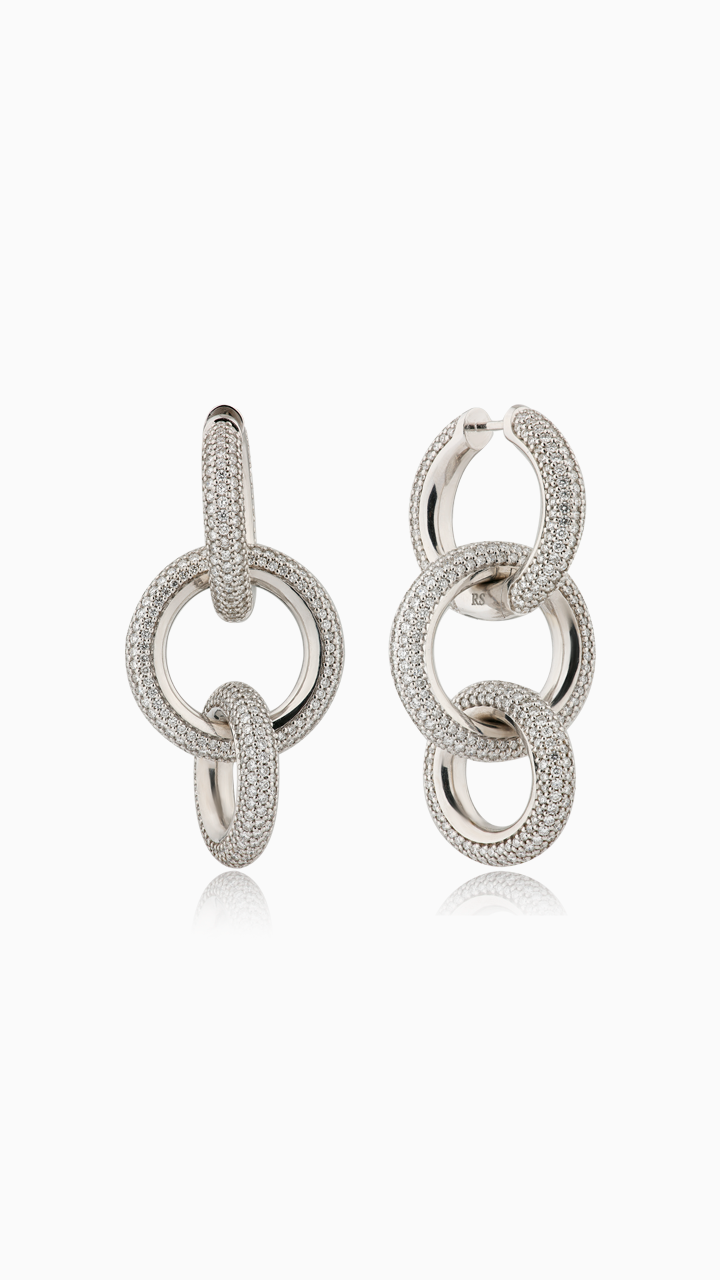 В коллекции CHAIN культовая эстетика белого золота и бриллиантовой обсыпки с уникальной закрепкой «паве» вступает в диалог с непокорным, дерзким и смелым духом street fashion. Грубые звенья модного тренда переписывают правила дизайна утонченных ювелирных украшений.