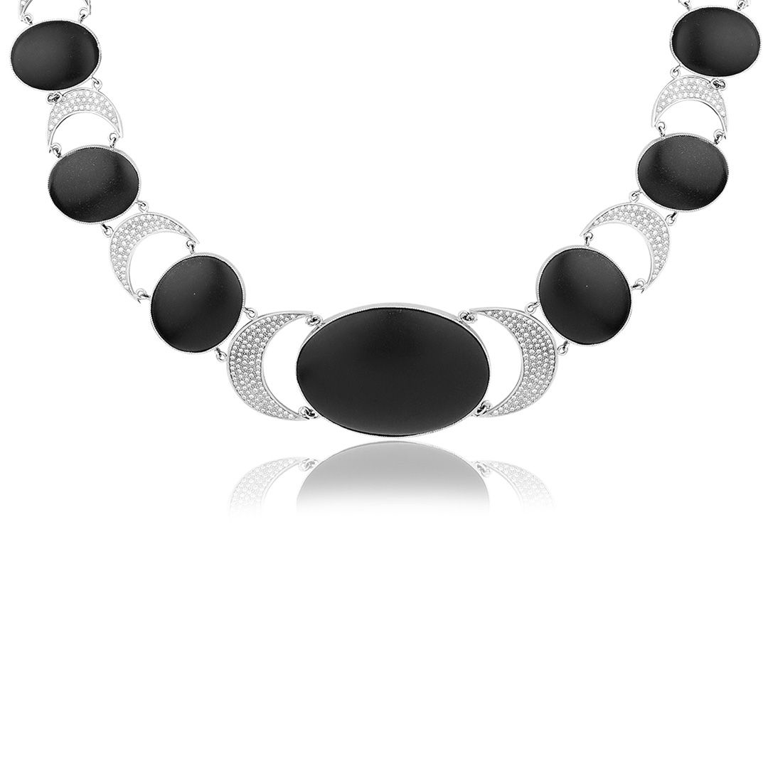 Колье «Ночь на Везувии» из белого золота с бриллиантами и агатами