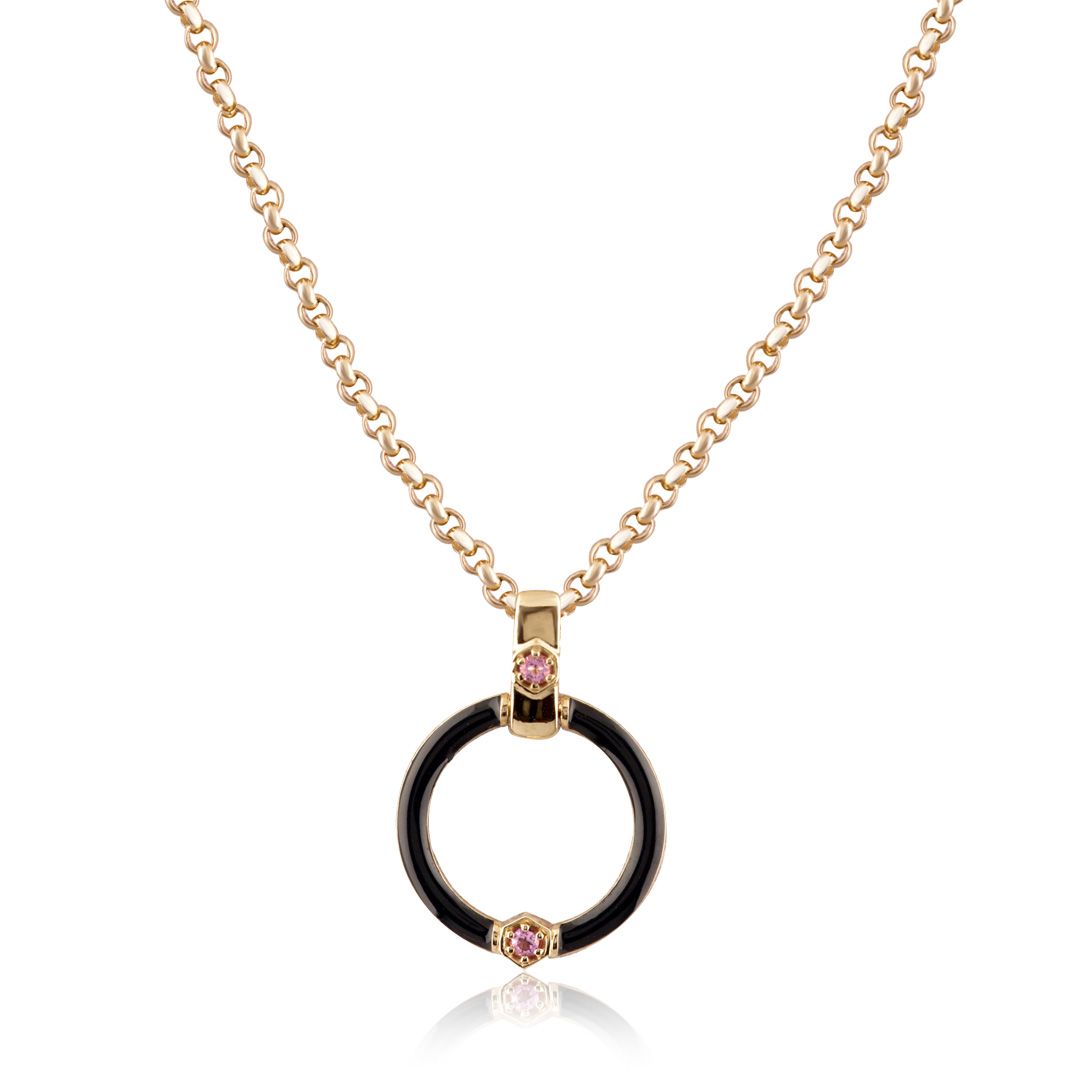 Настоящее воплощение стиля. Величественная подвеска в форме круга украшена глубокой черной эмалью, придающей ей таинственный вид. Нежно-розовые аметисты, расположенные вверху и внизу кольца, питают изделие женственностью. Коллекция CANDY – это больше, чем просто ювелирные украшения. Это настоящее искусство сочных цветов, энергии и стильных решений.