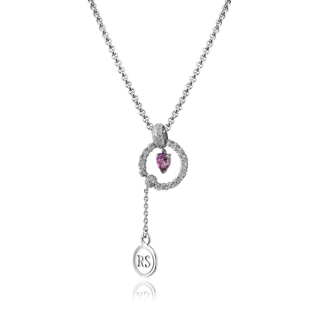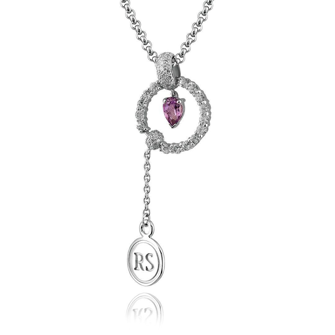 Колье из белого золота с аметистом, сапфирами и бриллиантами