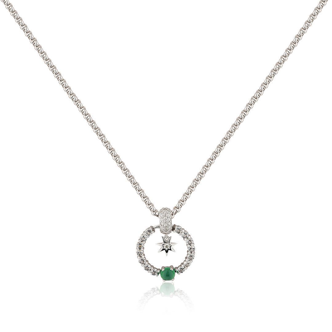 Колье из белого золота с топазами, бриллиантами и хризопразом
