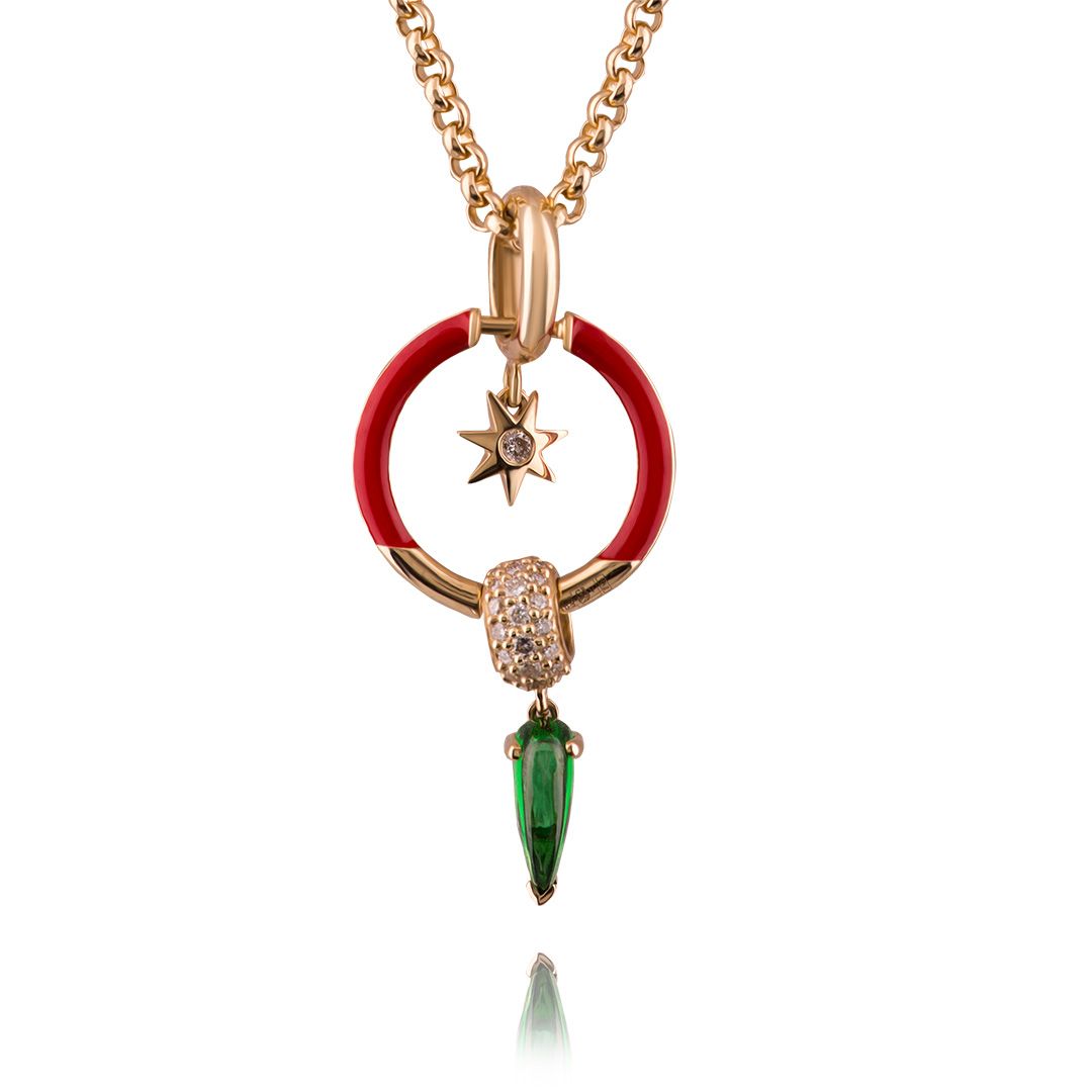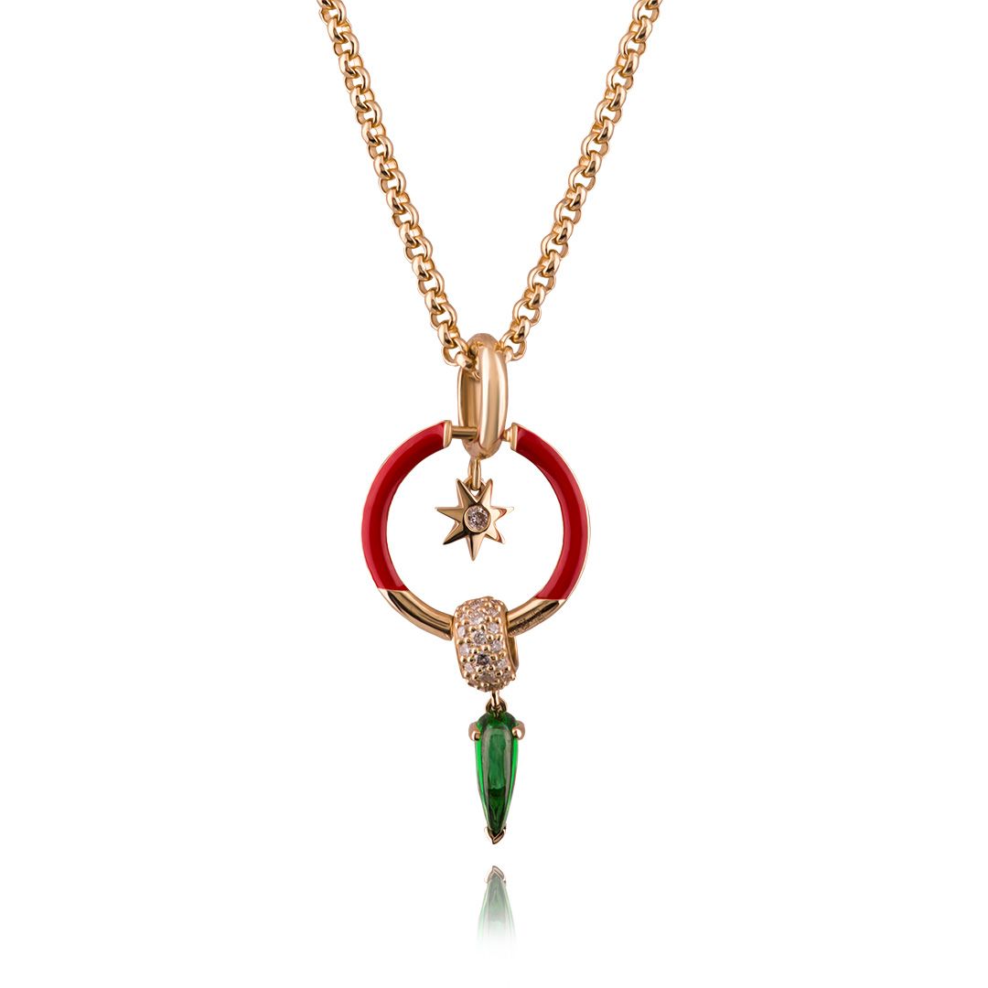 Колье из желтого золота с гранатом и бриллиантами