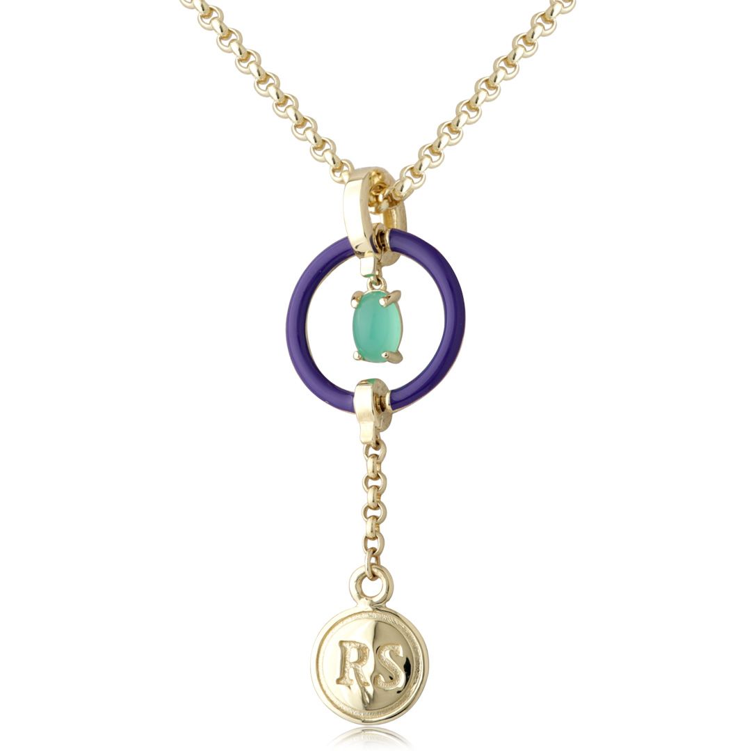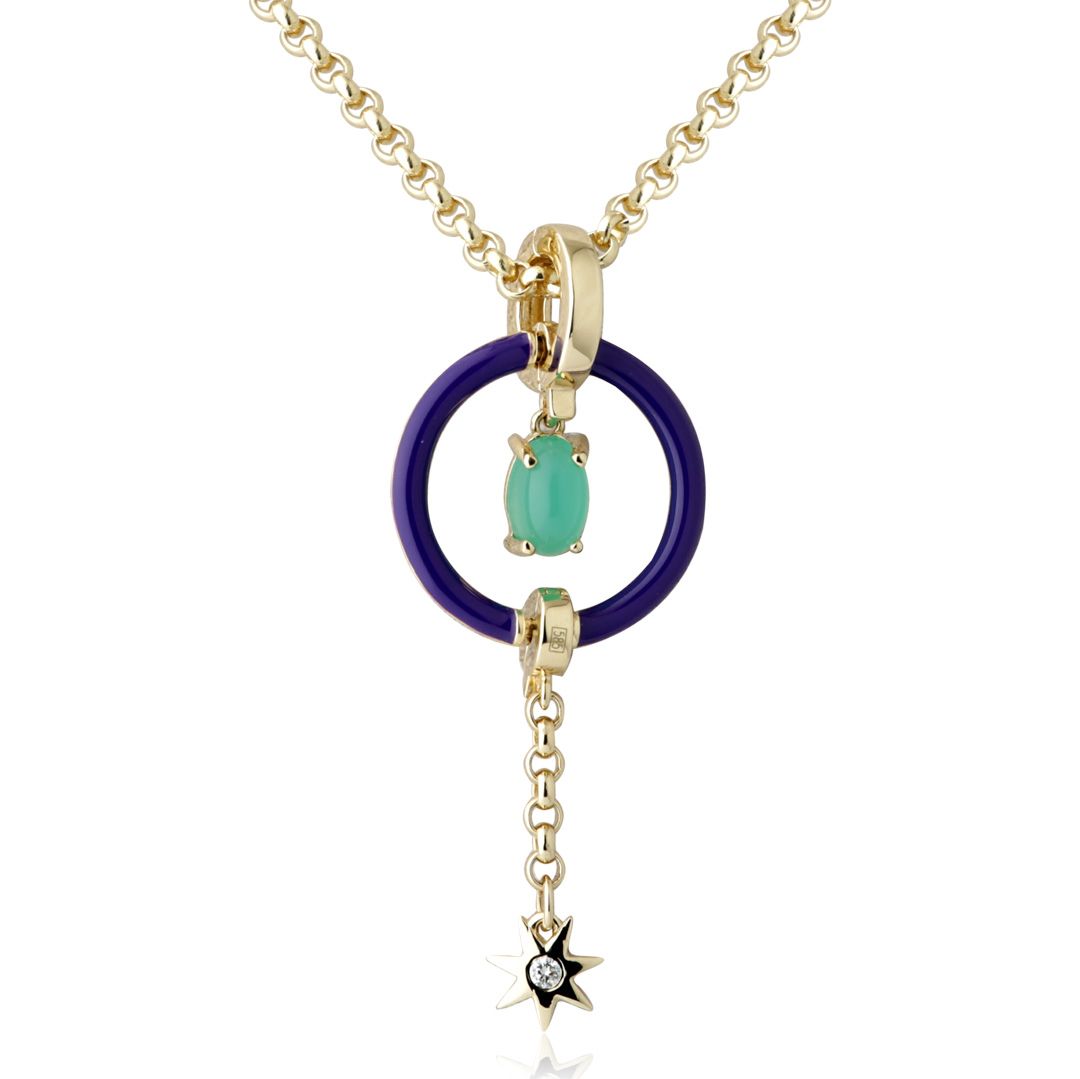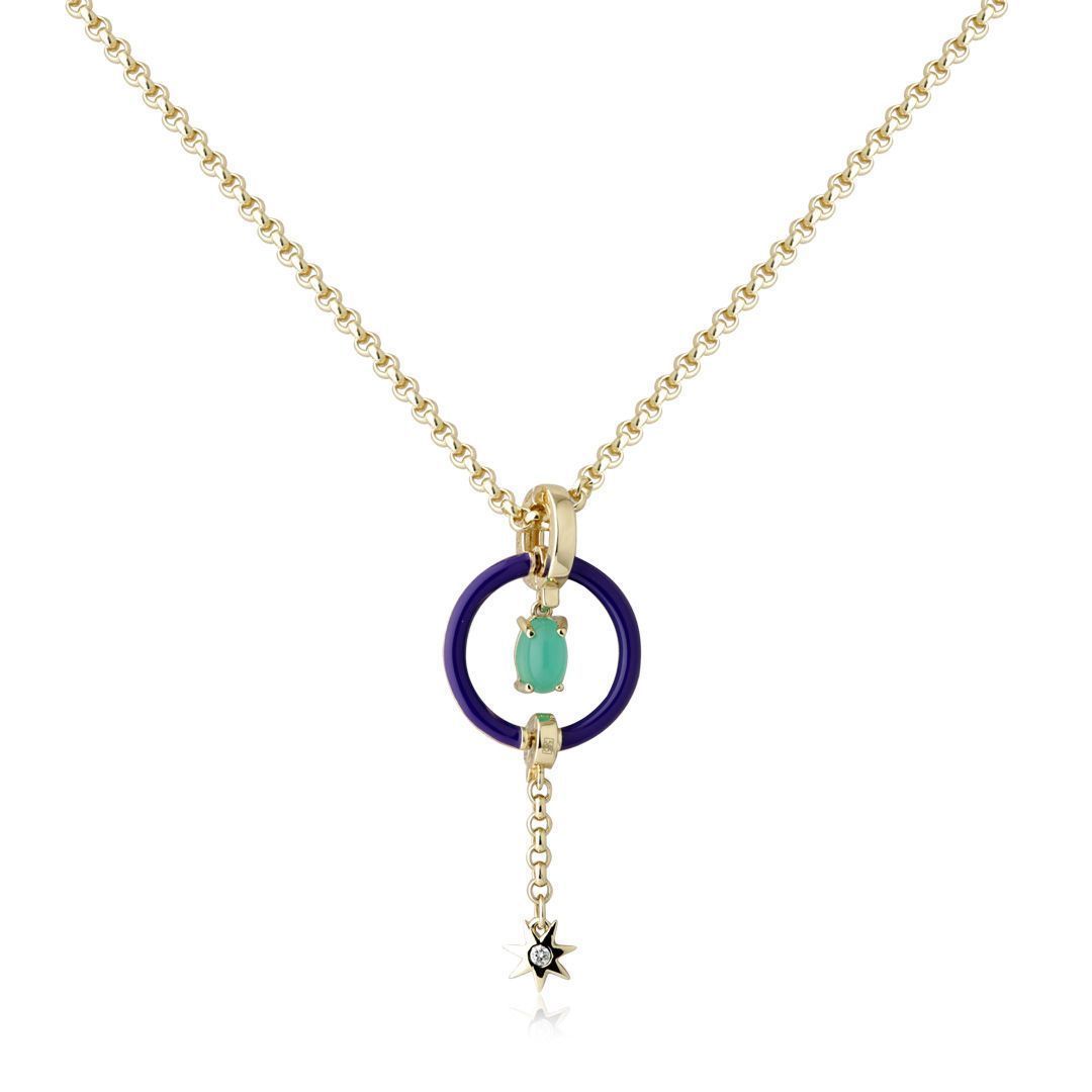 Колье из желтого золота с хризопразом и бриллиантом