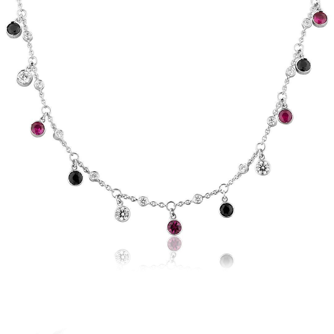 Колье из белого золота с сапфирами, рубинами и бриллиантами