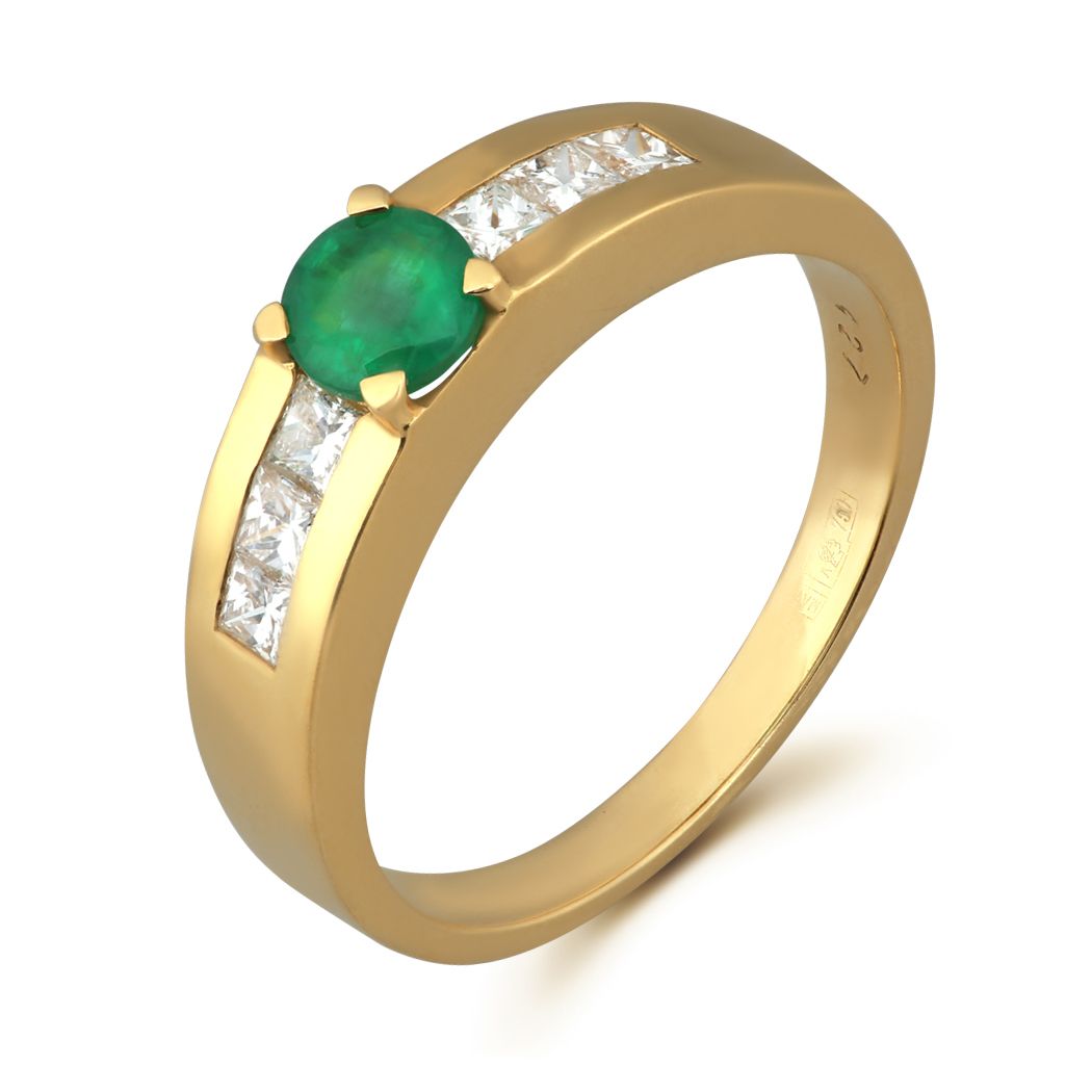 Кольцо из желтого золота с бриллиантами и изумрудом