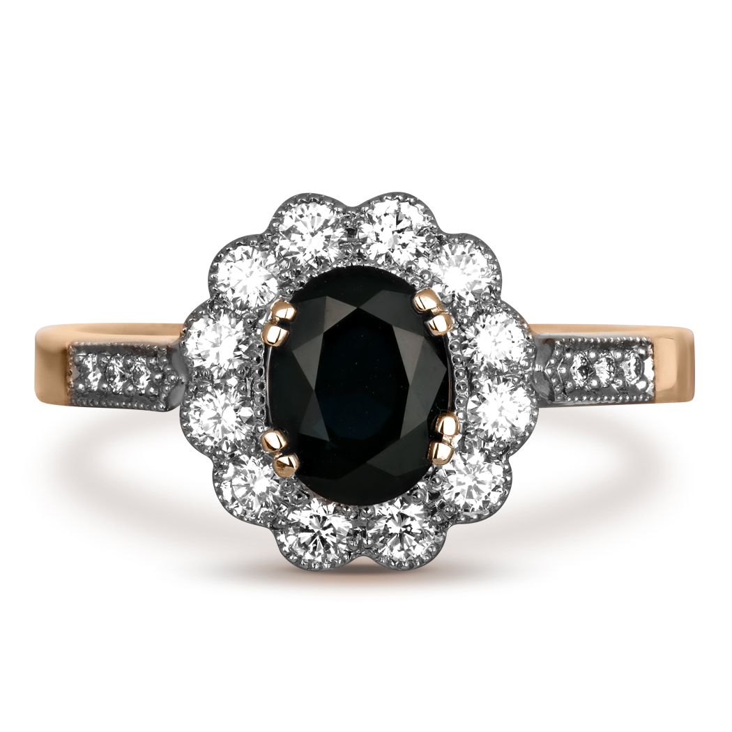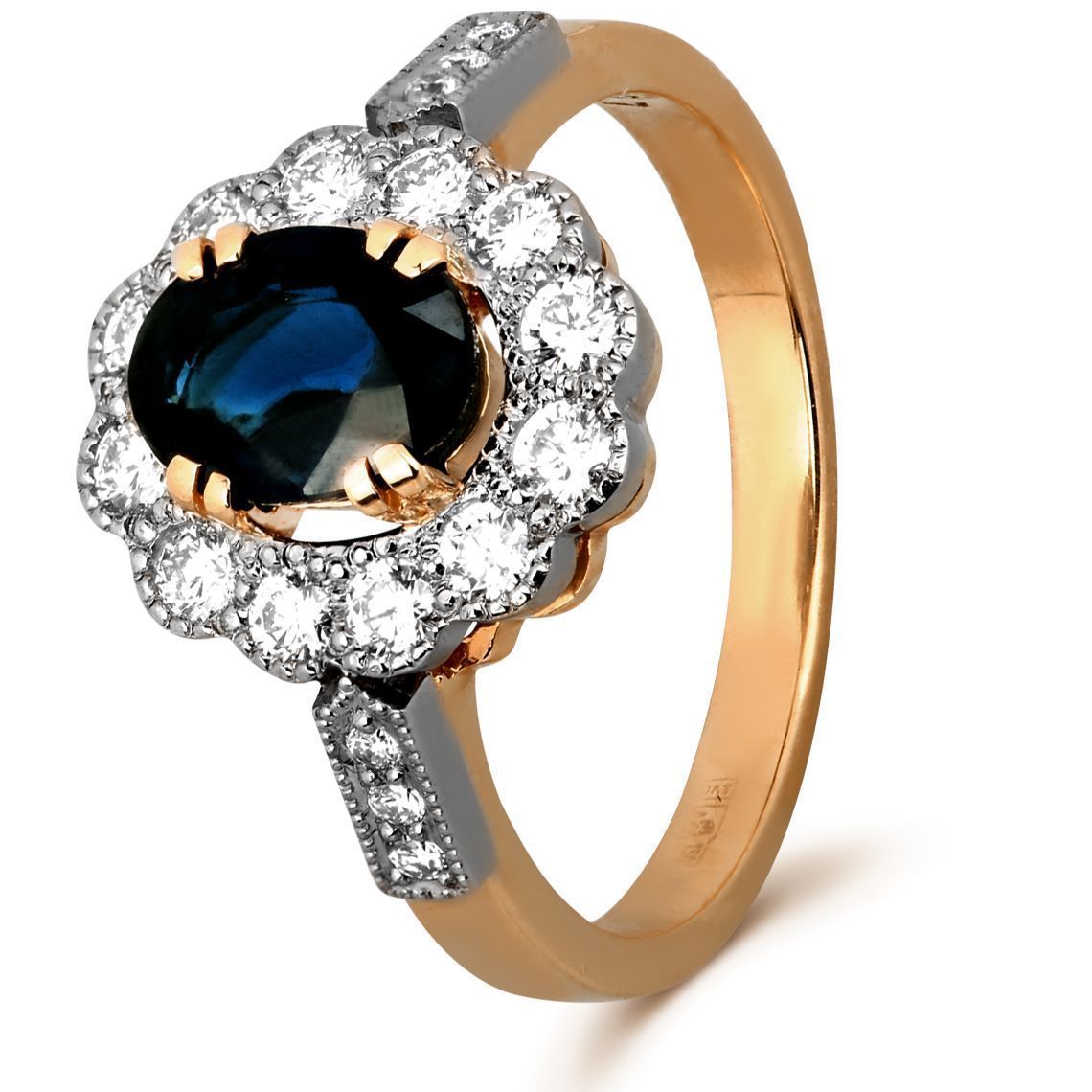 Кольцо из красного золота с бриллиантами и сапфиром