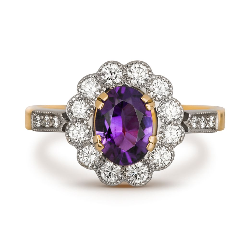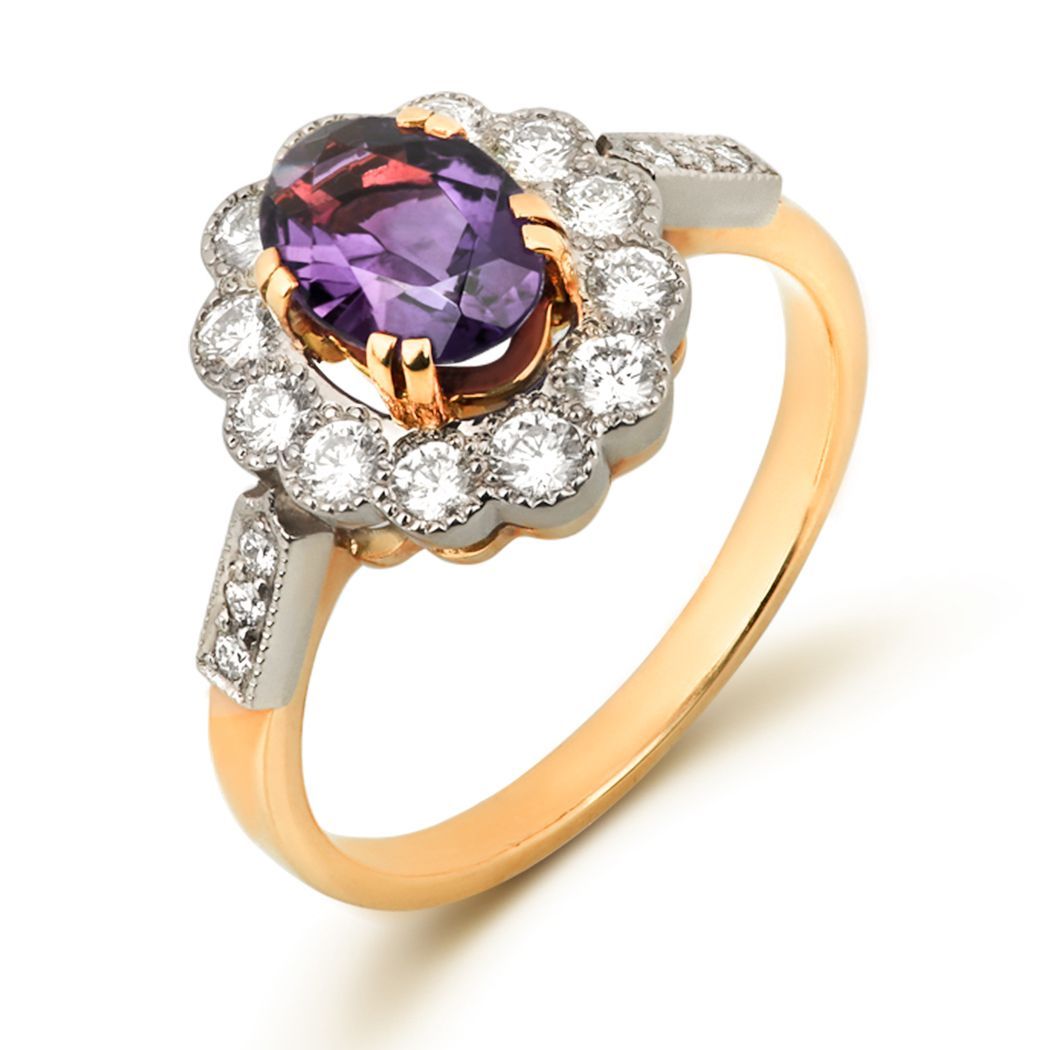 Кольцо из желтого золота с аметистом и бриллиантами