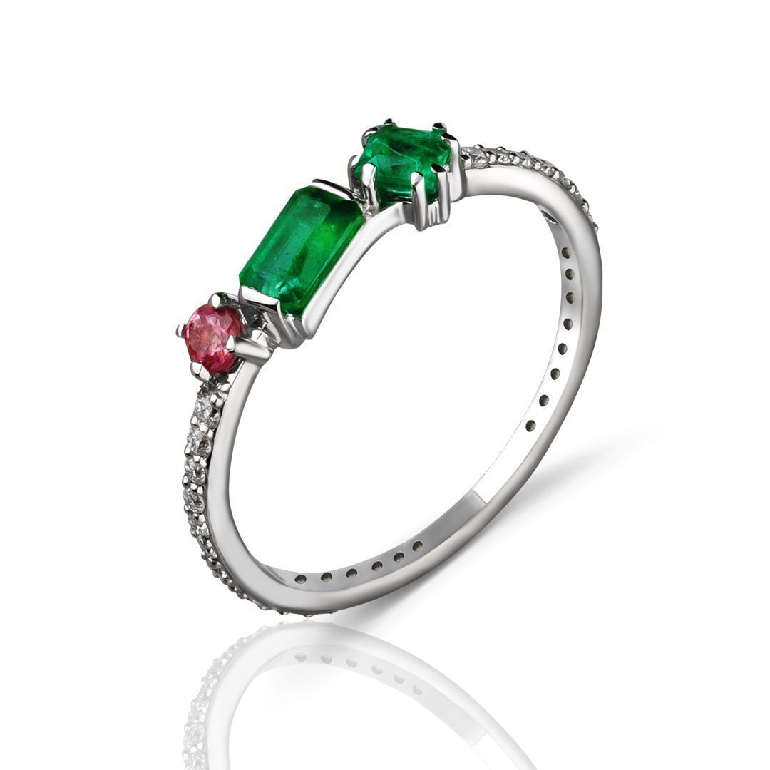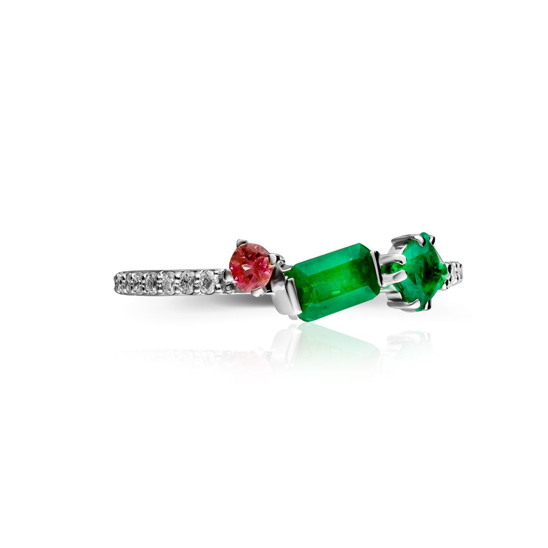 Кольцо из белого золота с турмалином, изумрудами и бриллиантами