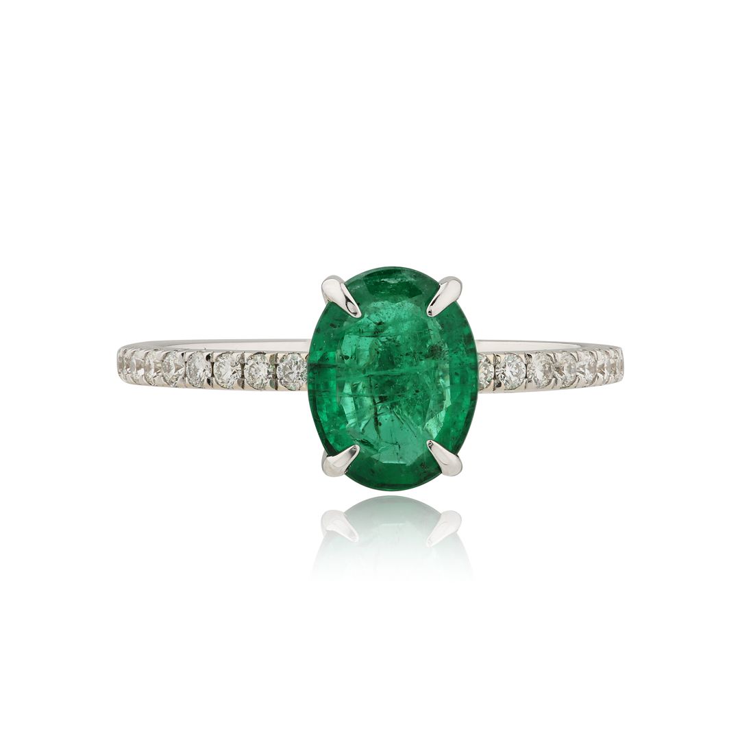 Кольцо из белого золота с бриллиантами и изумрудом 1.36 ct
