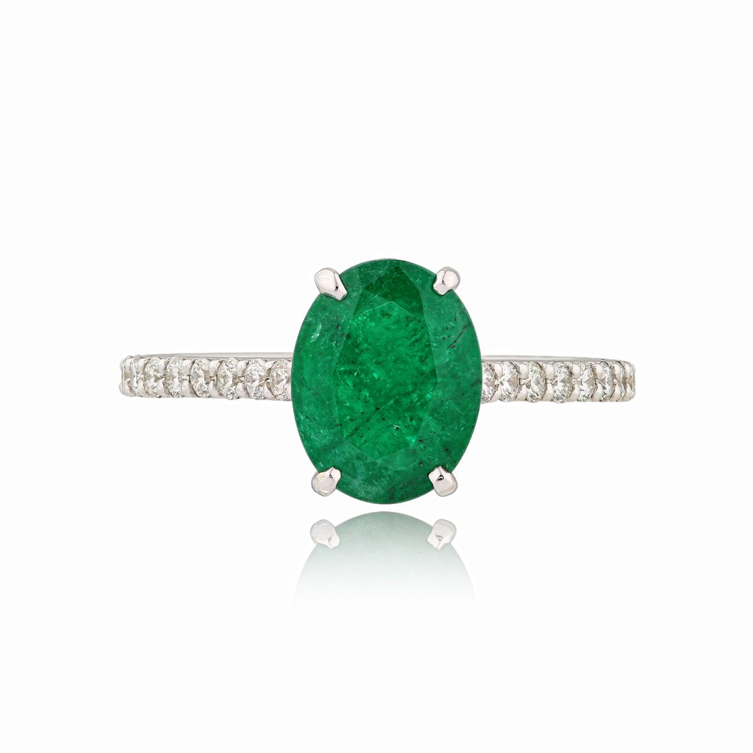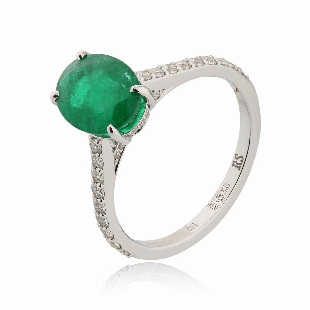 Кольцо из белого золота с изумрудом 2.0 ct и бриллиантами