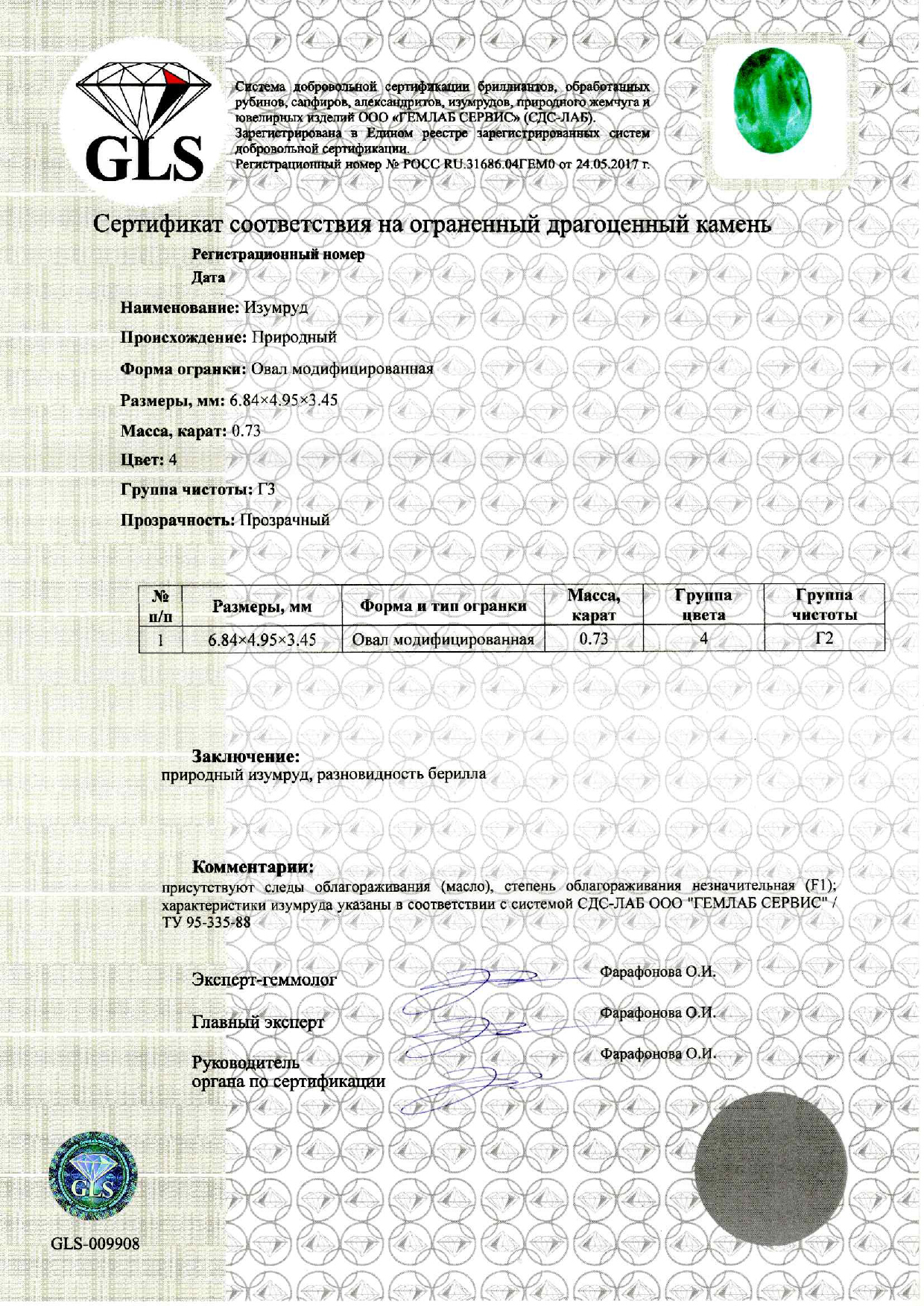 Арт.: 38588- Изумруд - Количество: 1, Форма: «Овал», Вес: 0.730 ct.